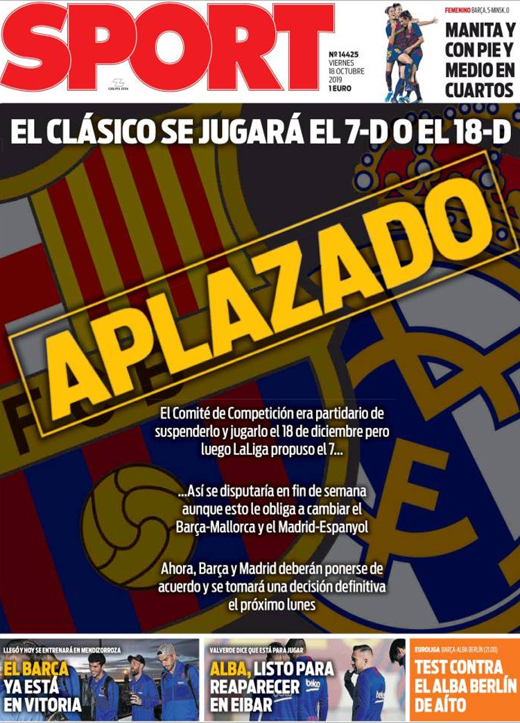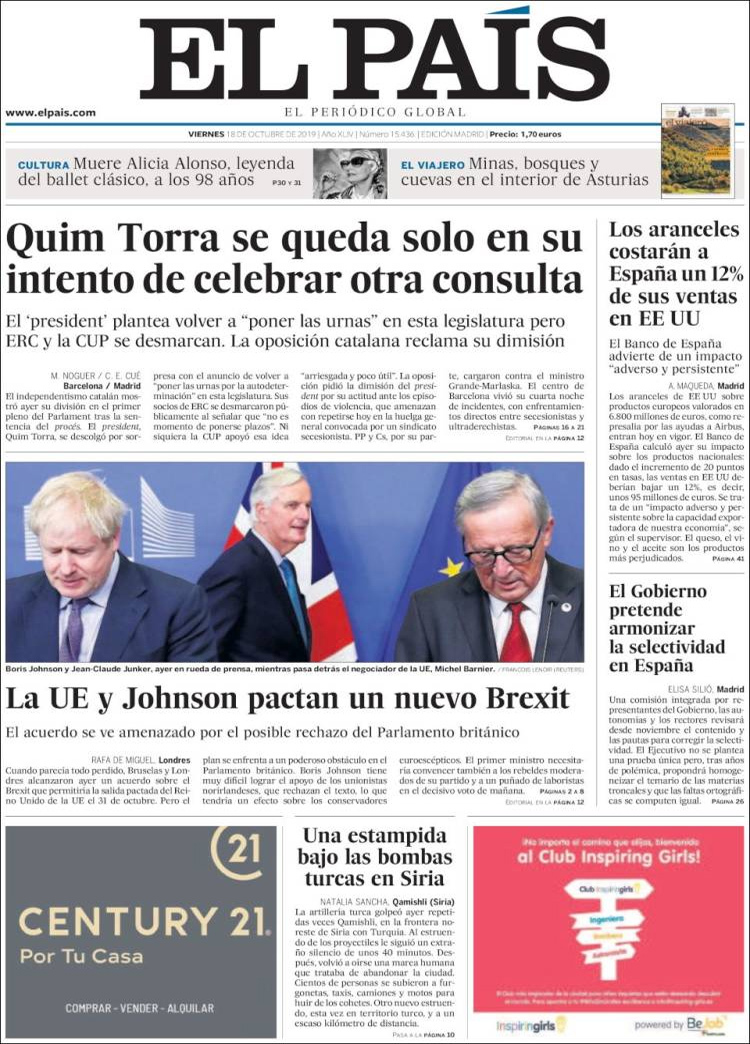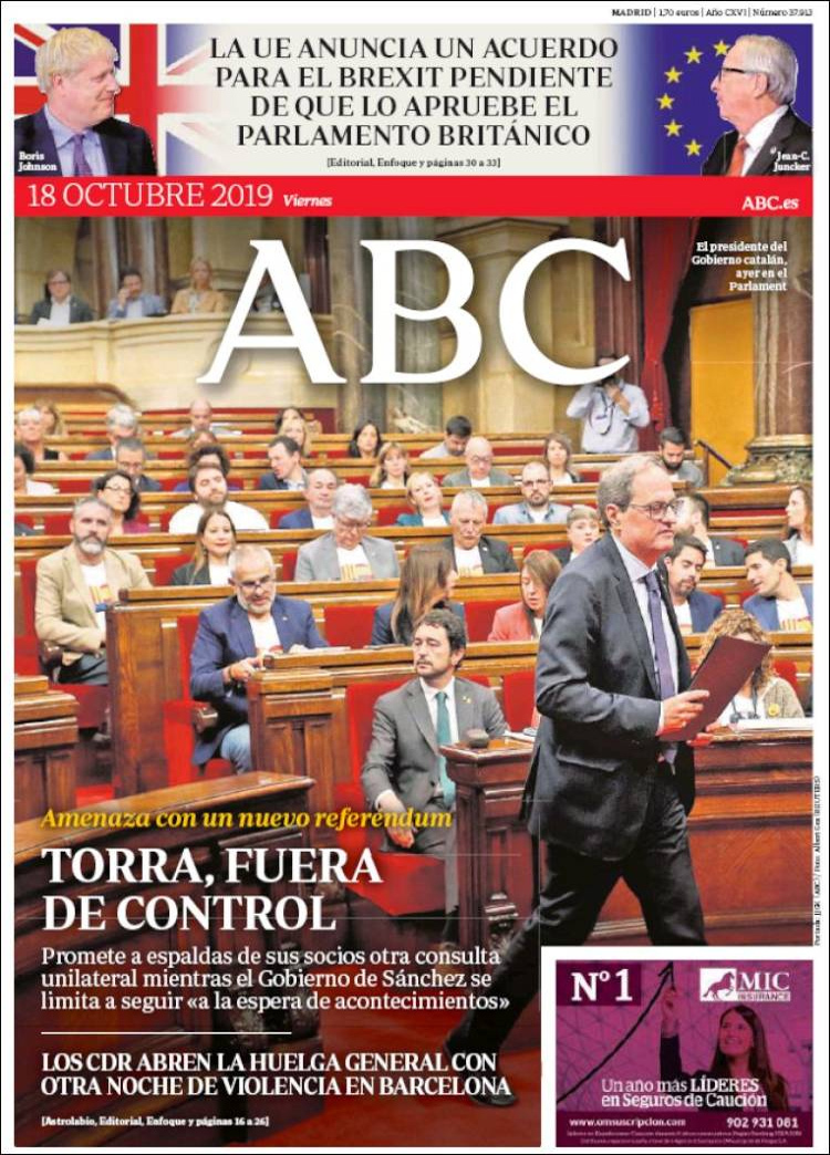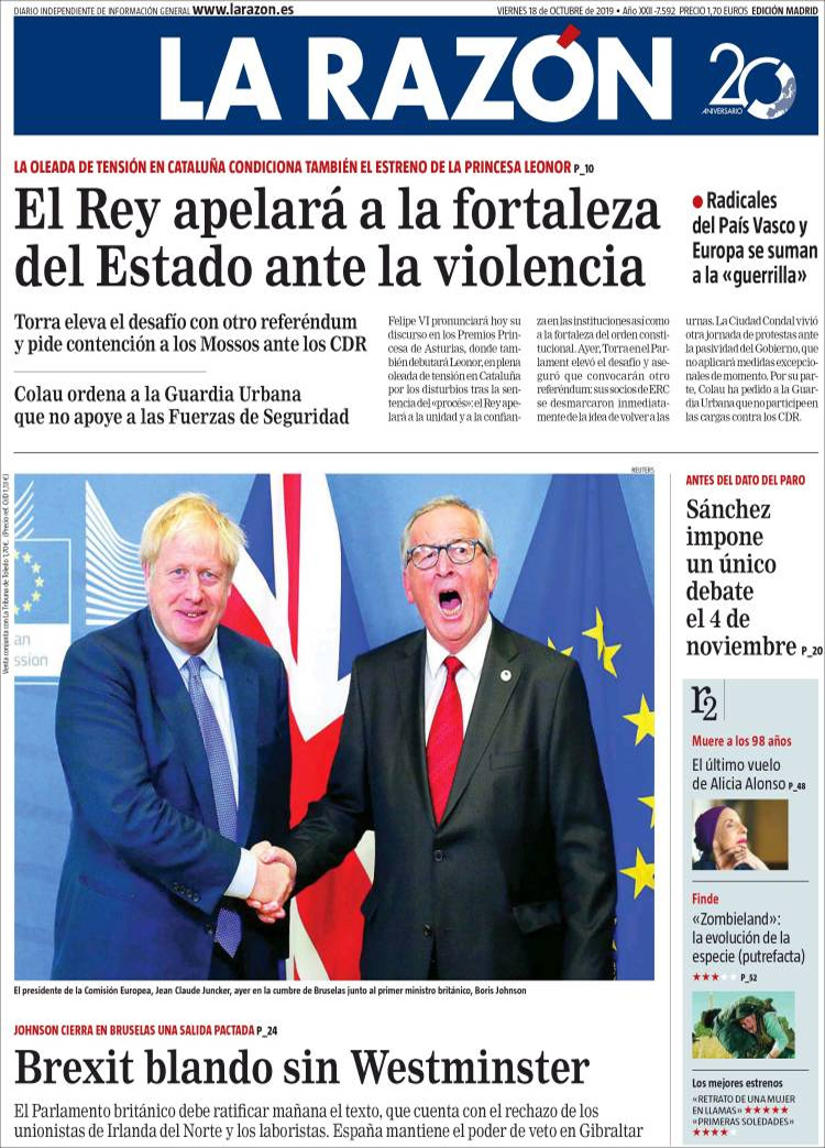 Principales portadas de hoy 18 de Octubre de 2019