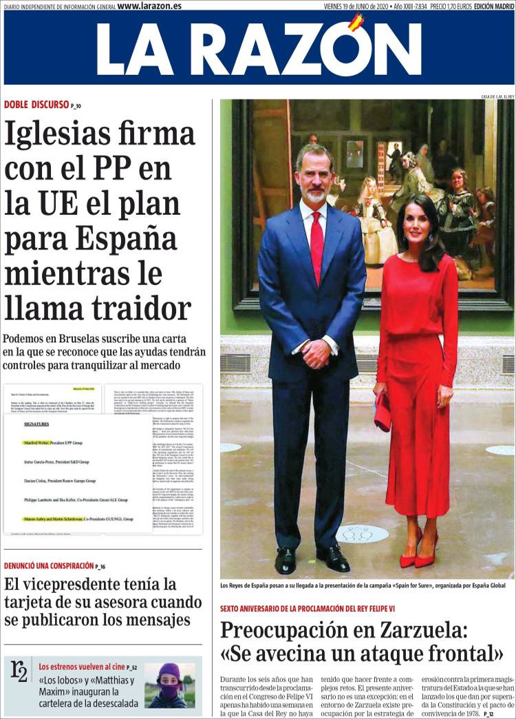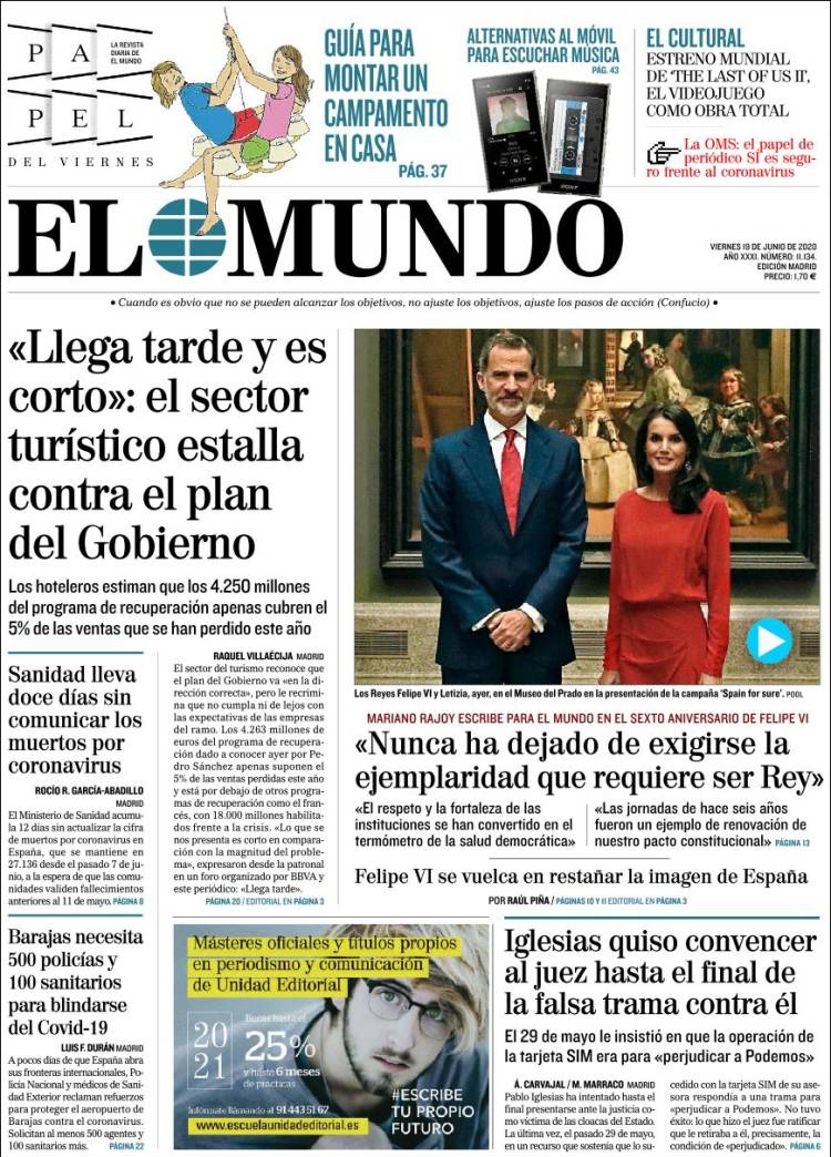 Principales portadas de hoy 19 de Junio de 2020