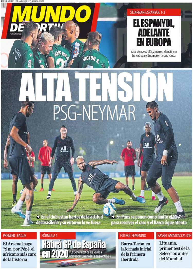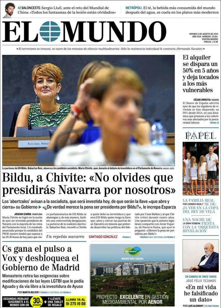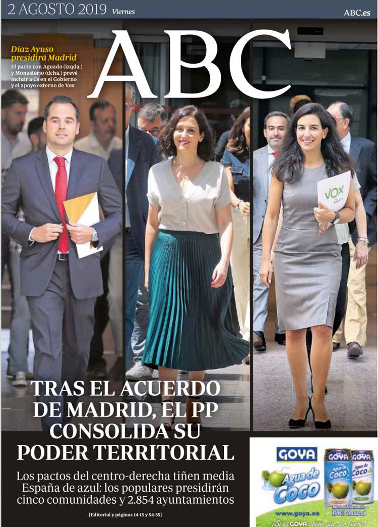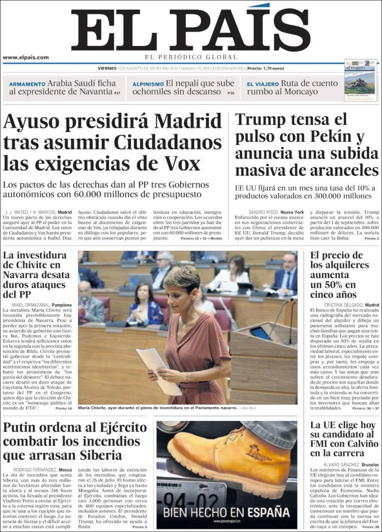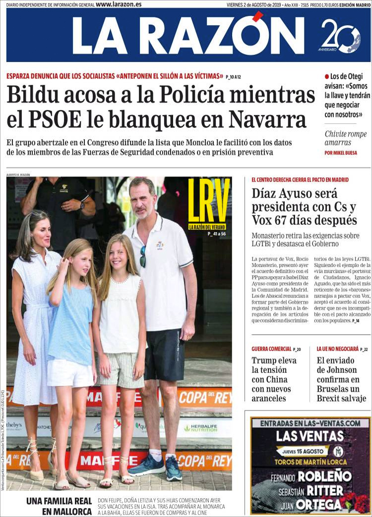 Principales portadas de hoy 2 de Agosto de 2019