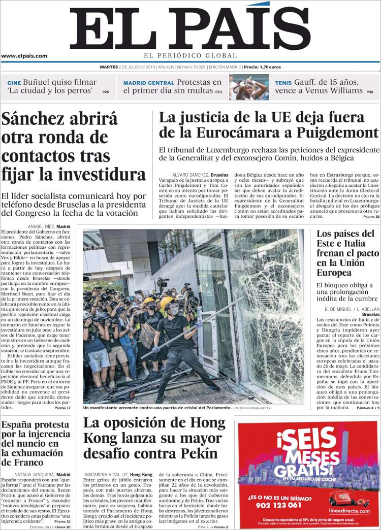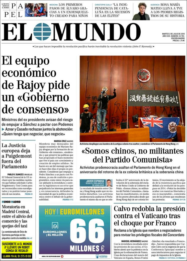 Principales portadas de hoy 2 de Julio de 2019