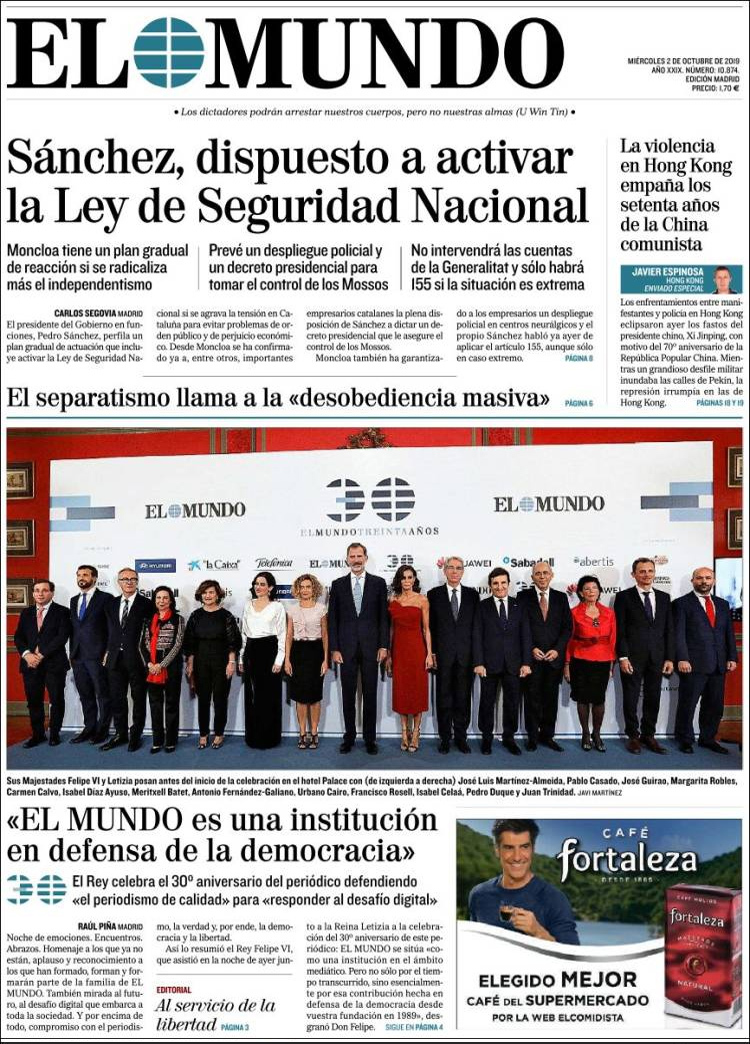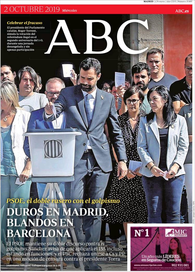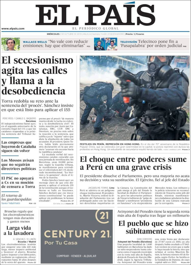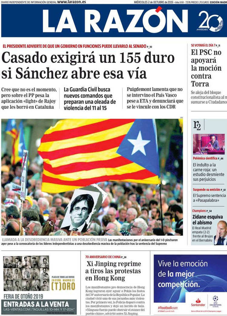 Principales Portadas de hoy 2 de Octubre de 2019