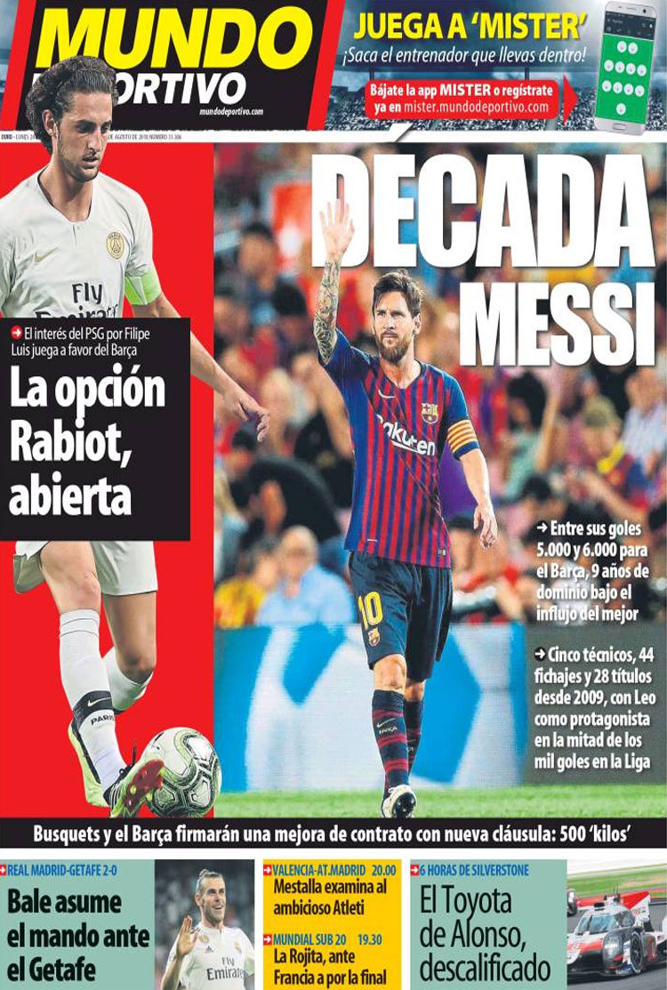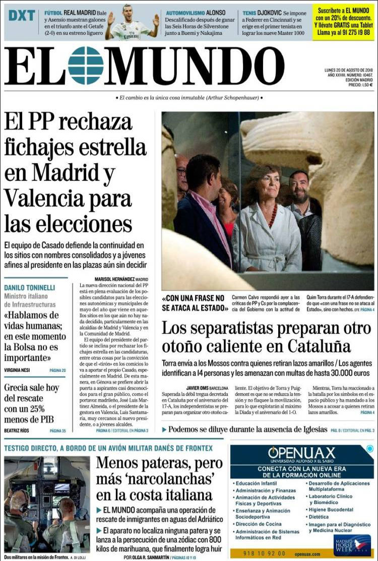 Principales portadas de hoy 20 de Agosto de 2018