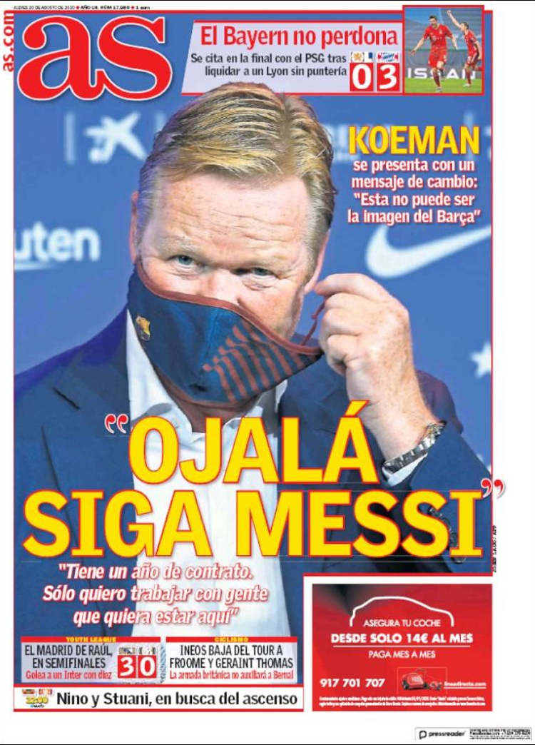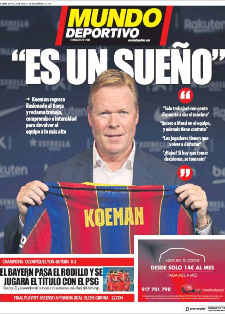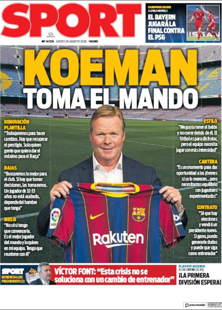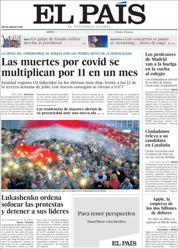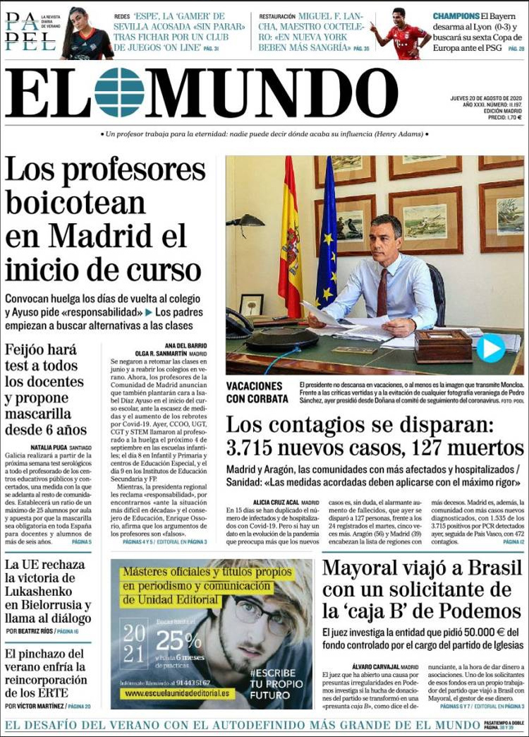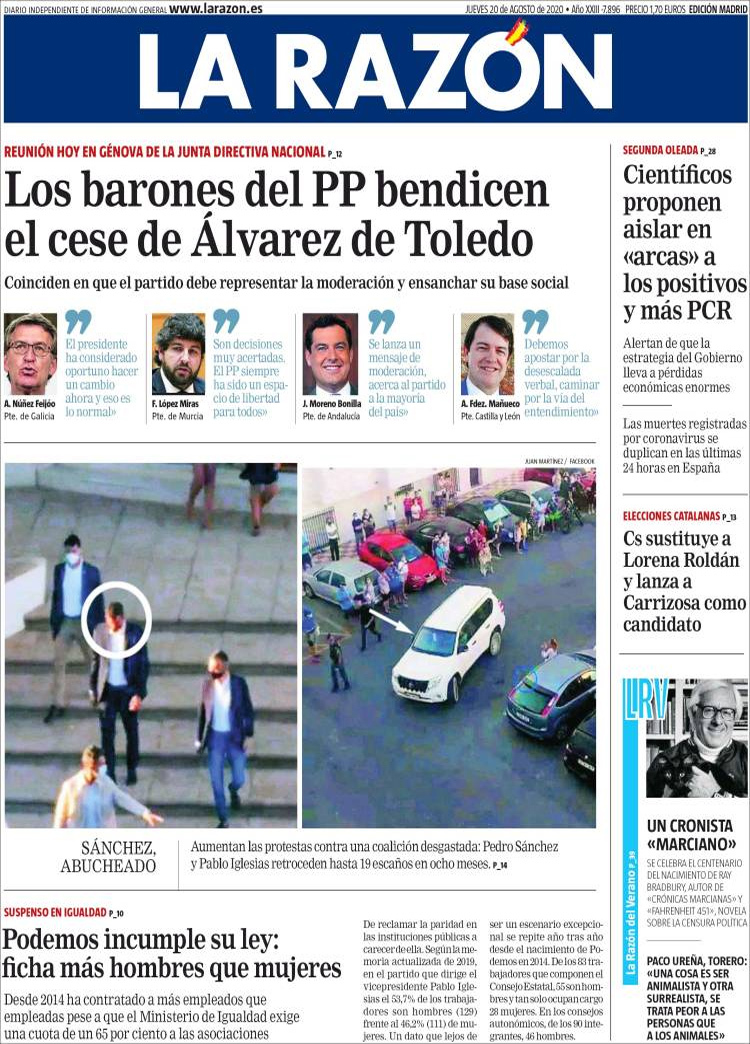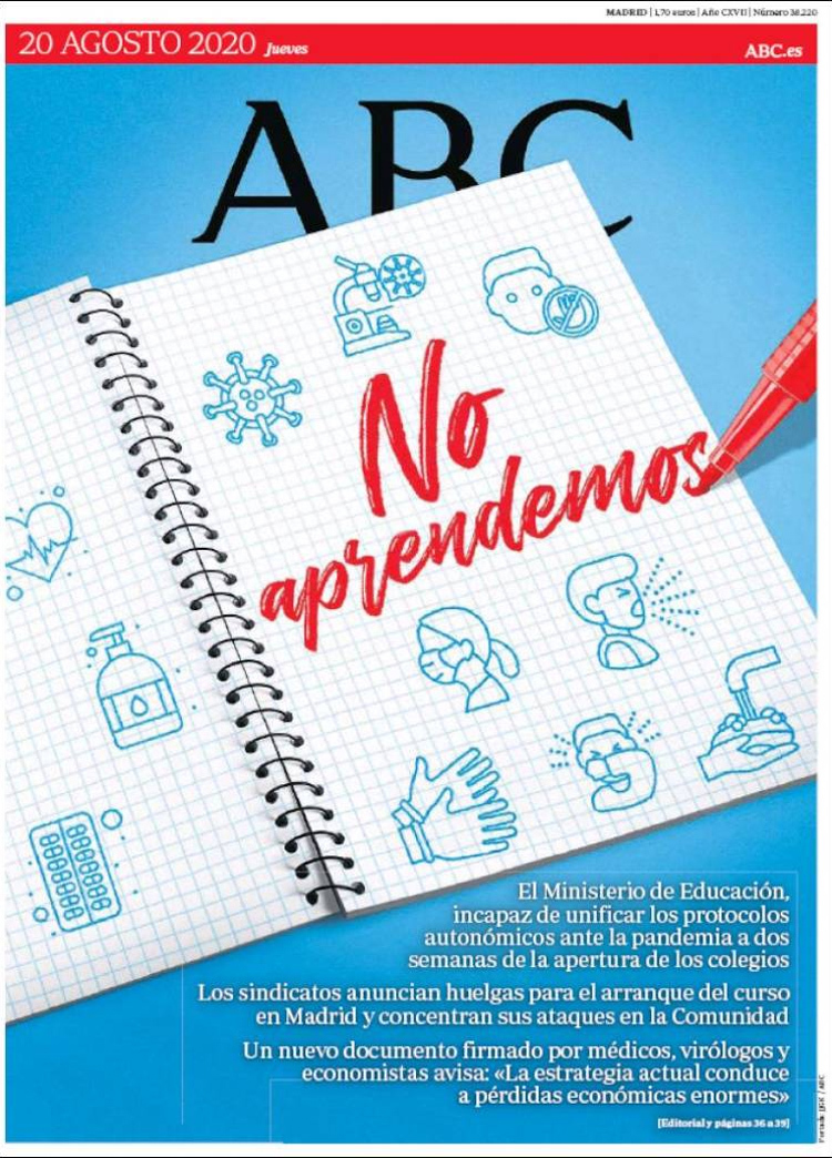 Principales portadas de hoy 20 de Agosto de 2020