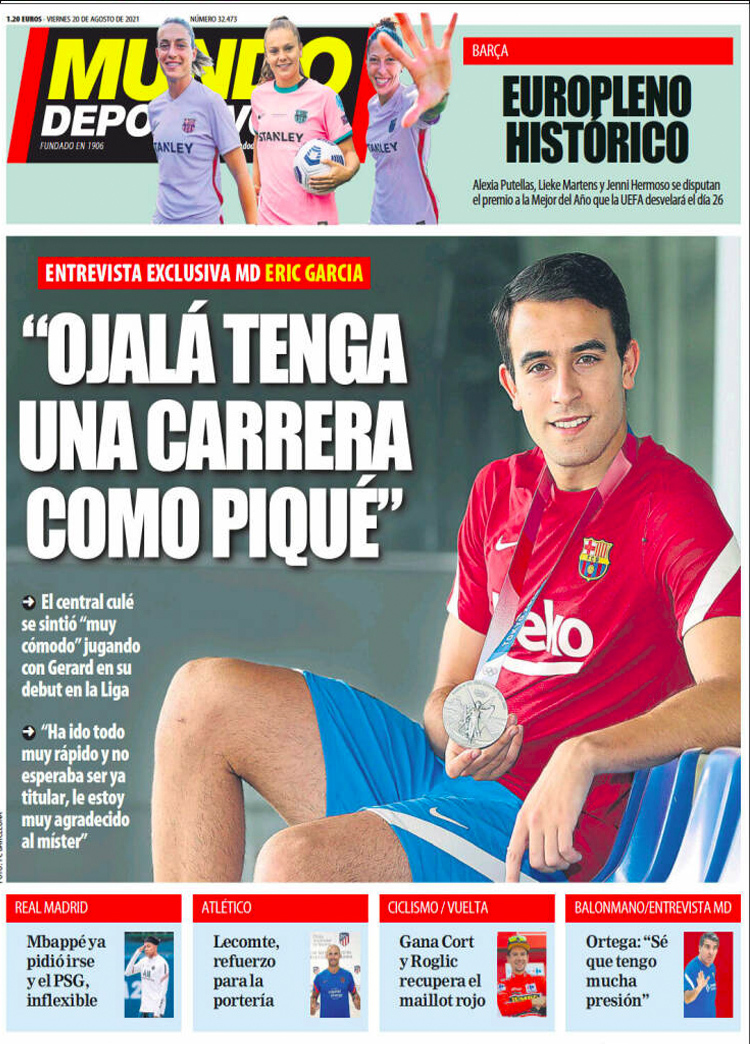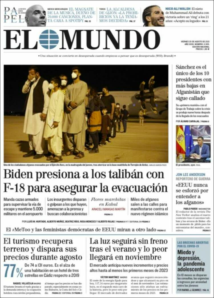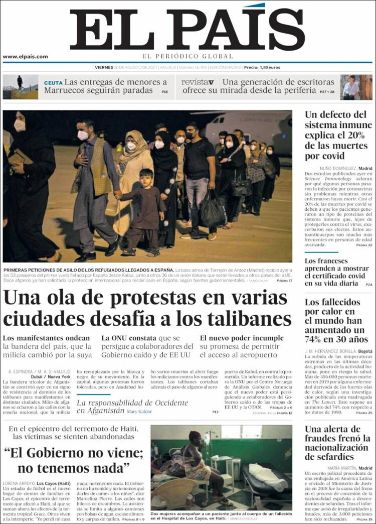 Principales portadas de hoy 20 de Agosto de 2021