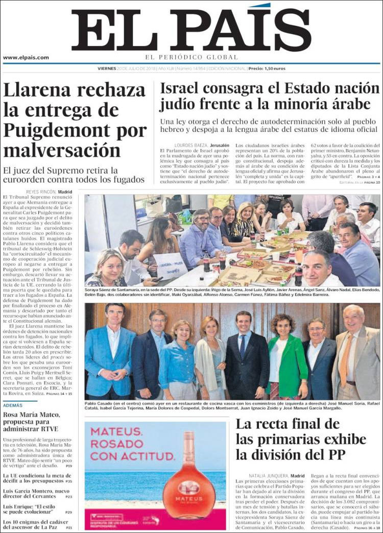 Principales portadas de hoy 20 de Julio de 2018