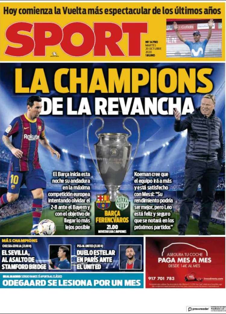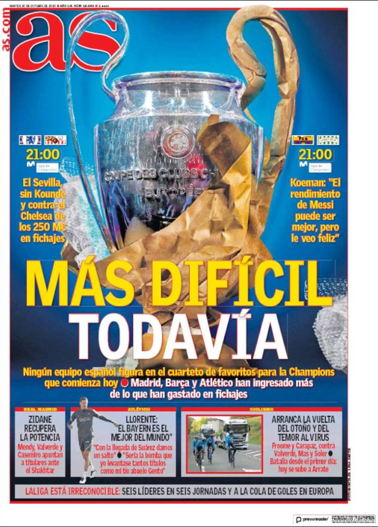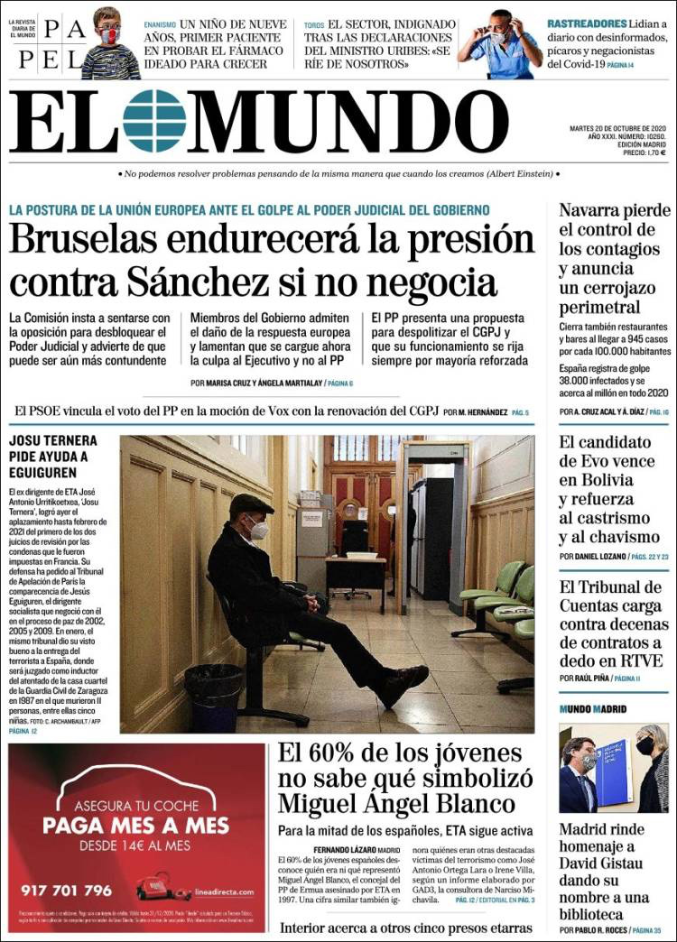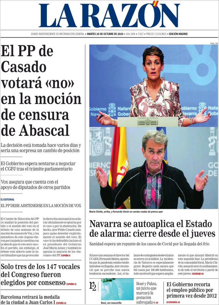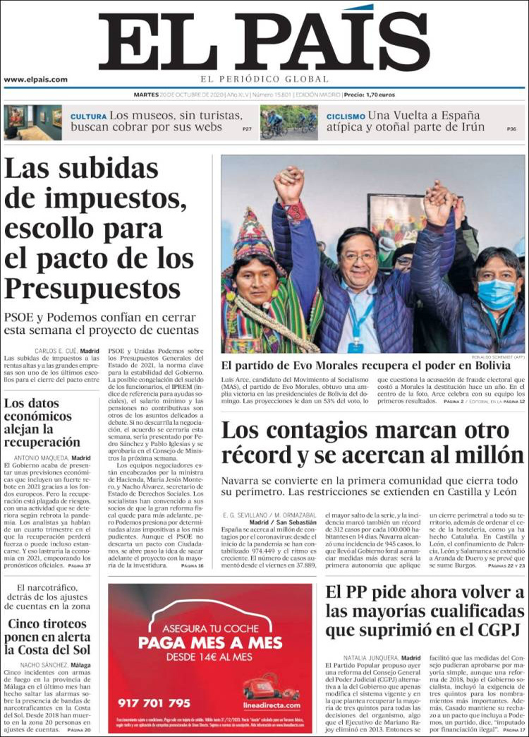 Principales portadas de hoy 20 de Octubre de 2020