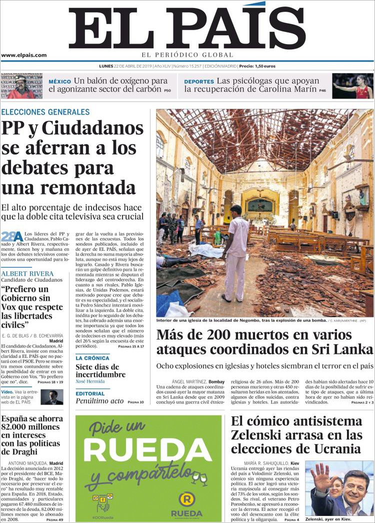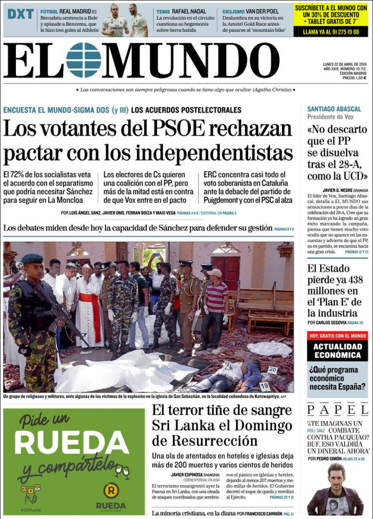 Principales portadas de hoy 22 de Abril de 2018
