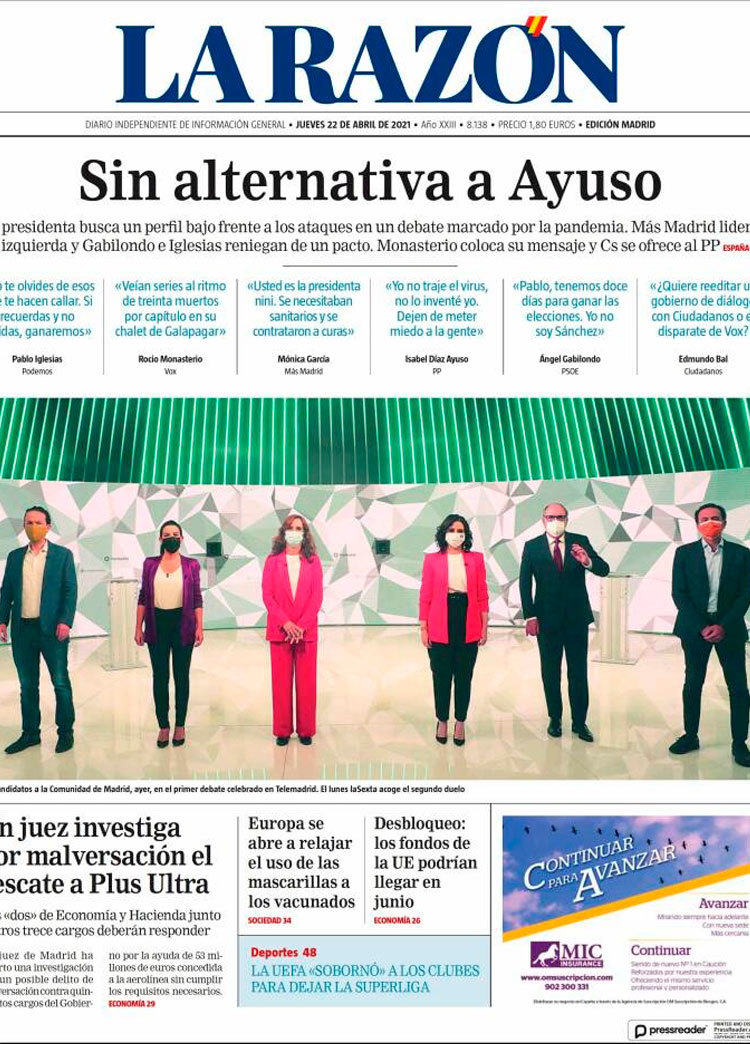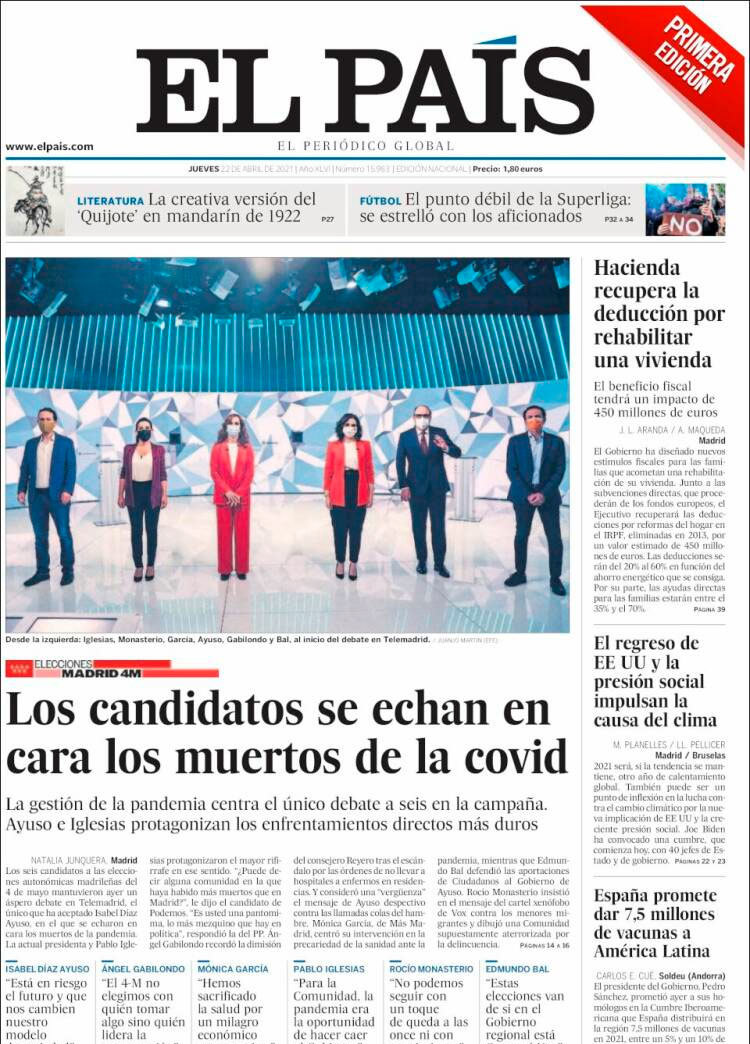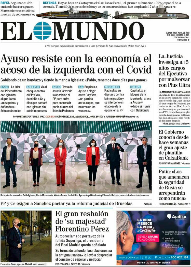 Principales portadas de hoy 22 de Abril de 2021