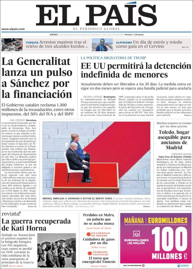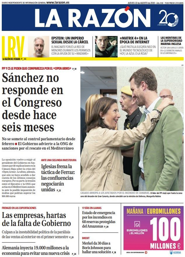 Principales portadas de hoy 22 de Agosto de 2019