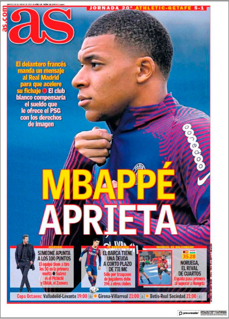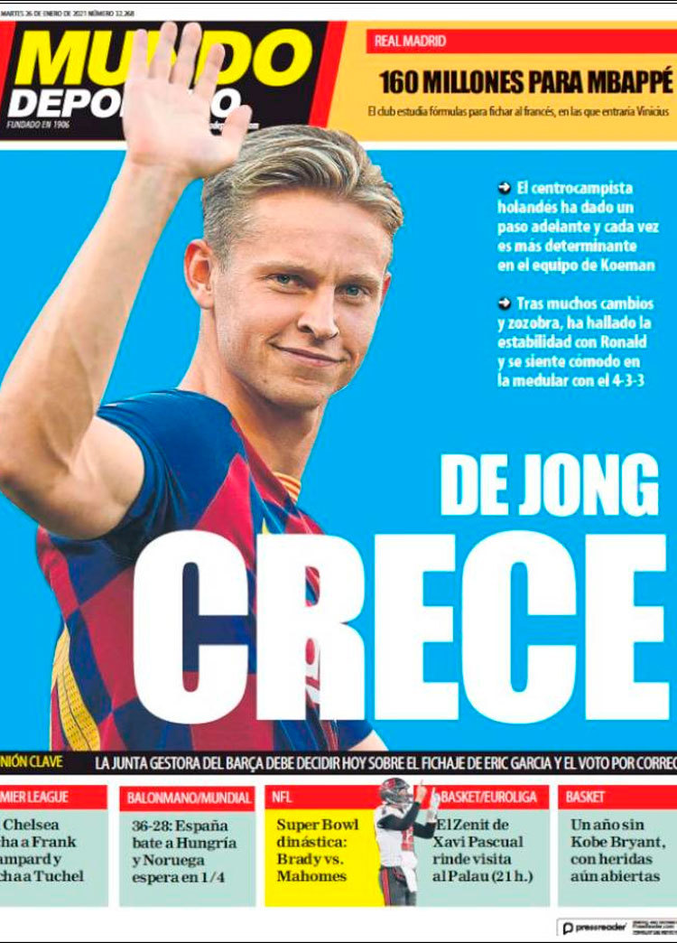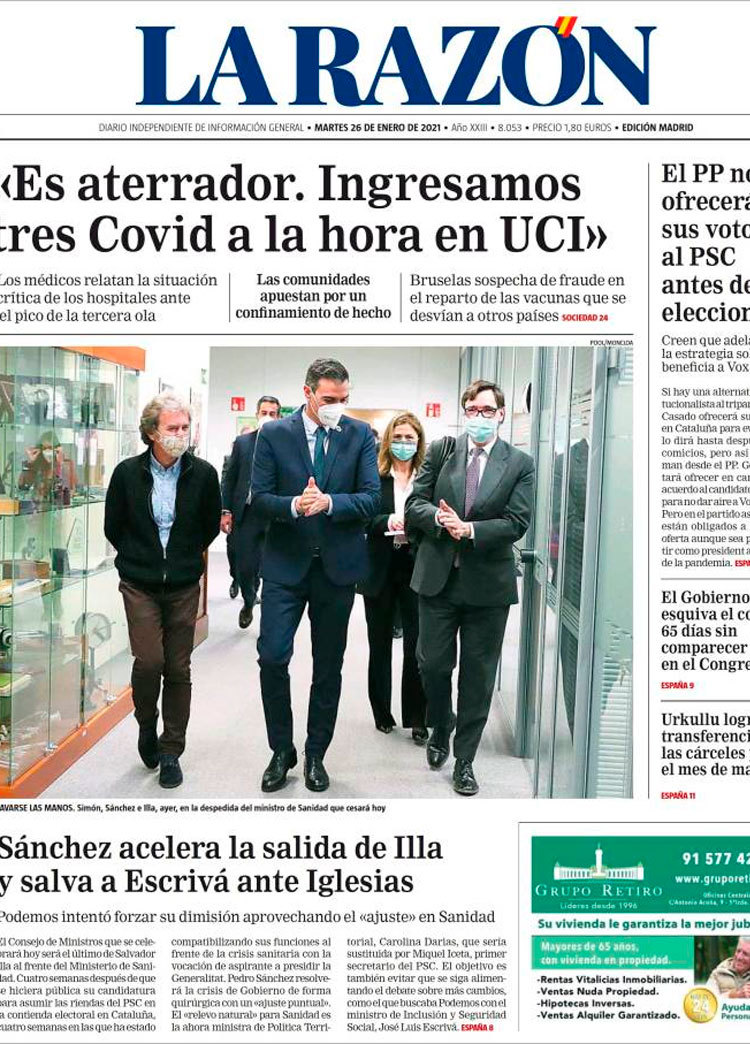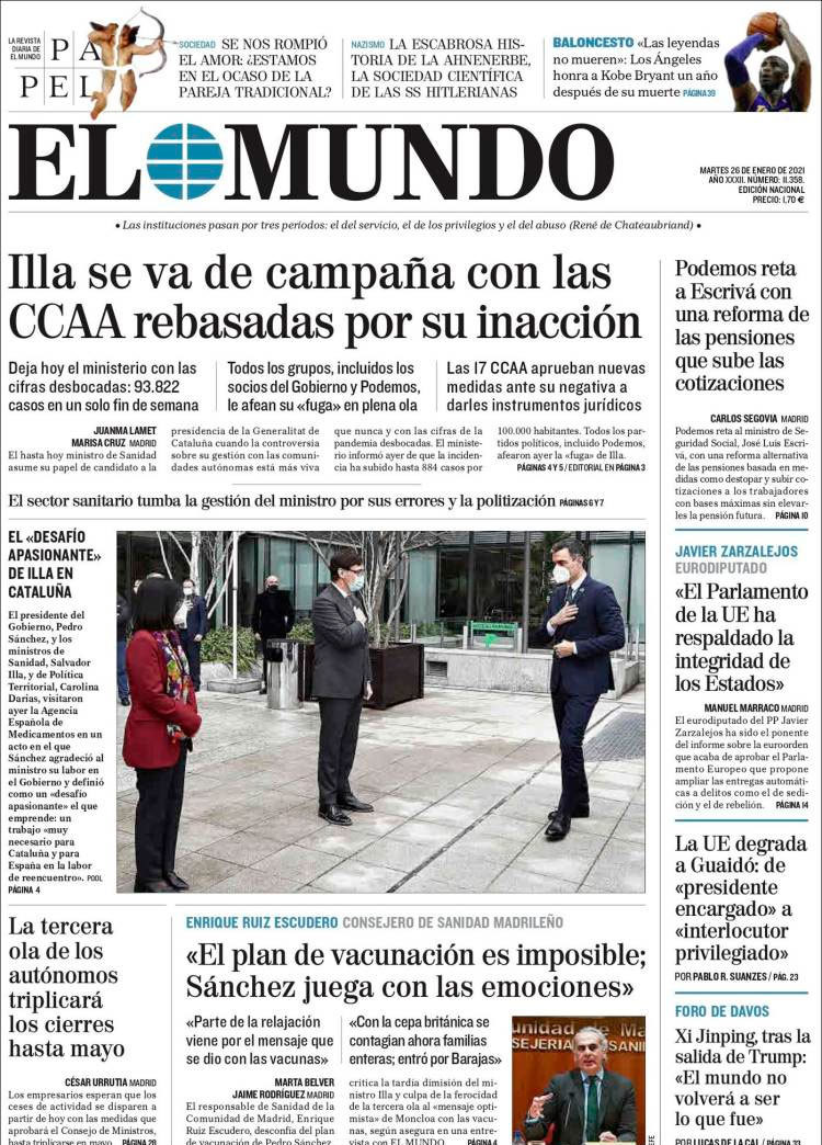Principales portadas de hoy 26 de Enero de 2021