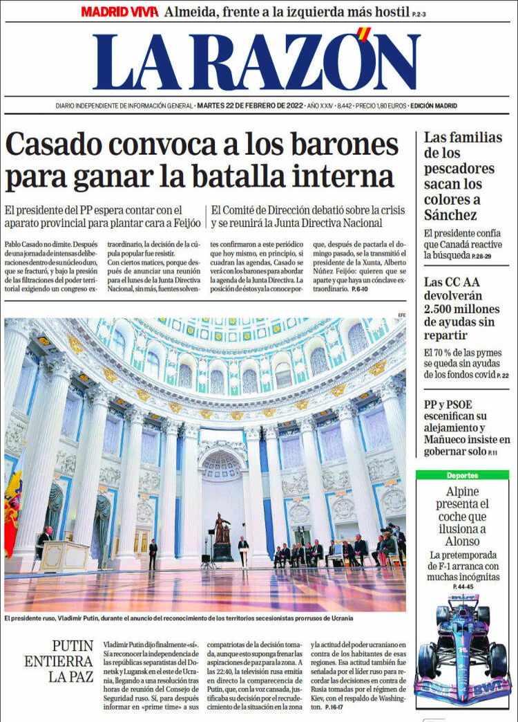 Principales portadas de hoy 22 de Febrero de 2022