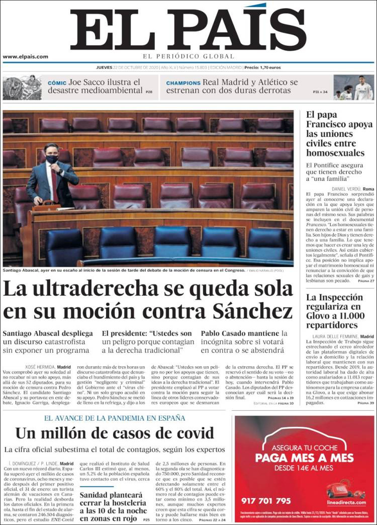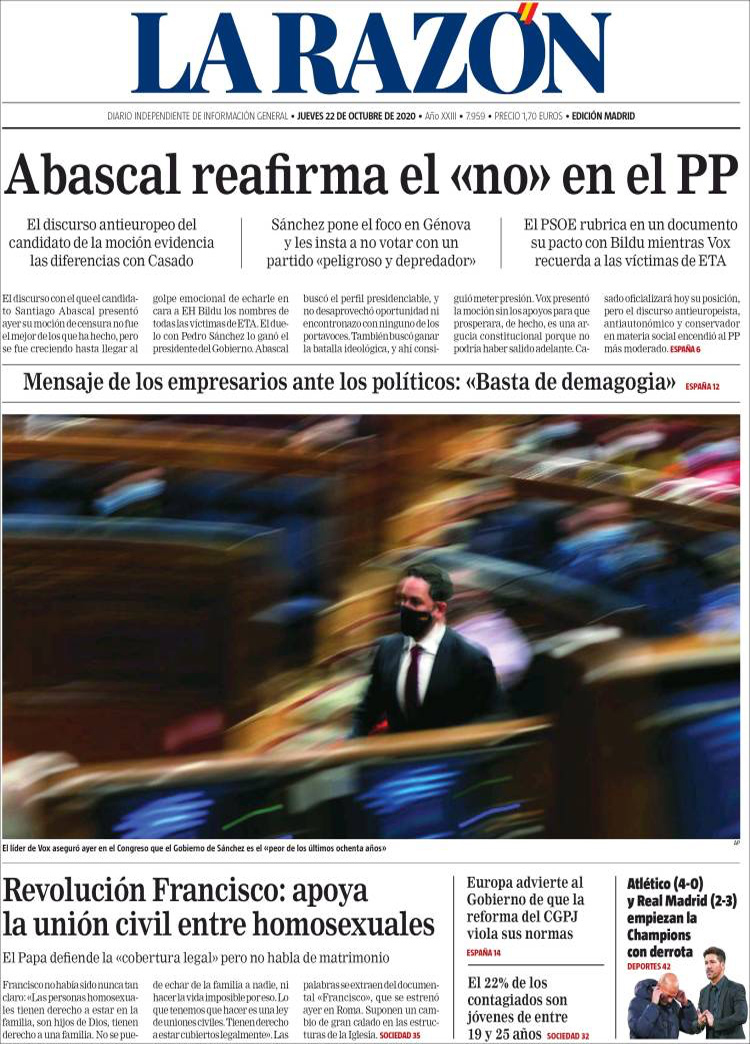 Principales portadas de hoy 22 de Octubre de 2020