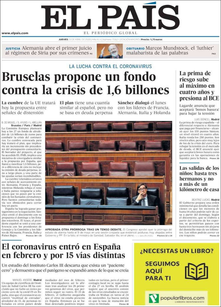 Principales portadas de hoy 23 de Abril de 2020