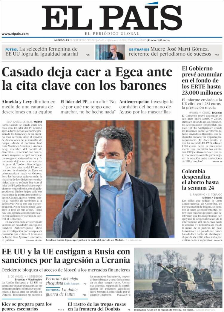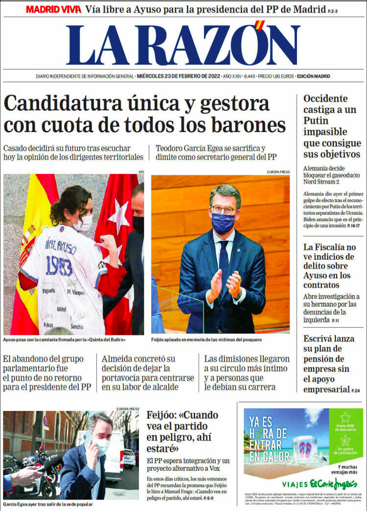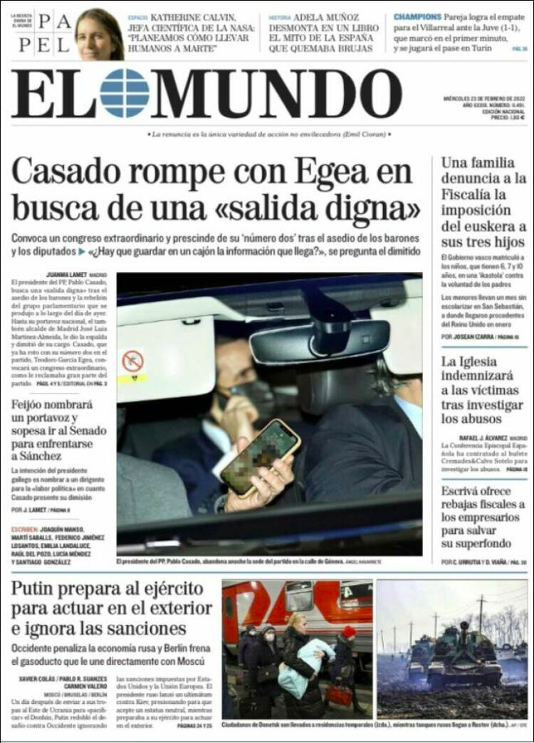 Principales portadas de hoy 23 de Febrero de 2022