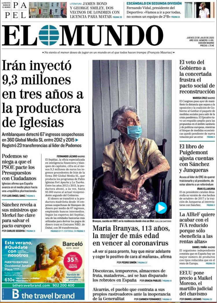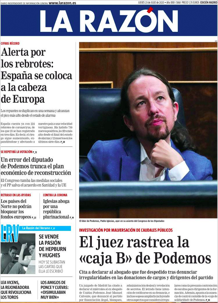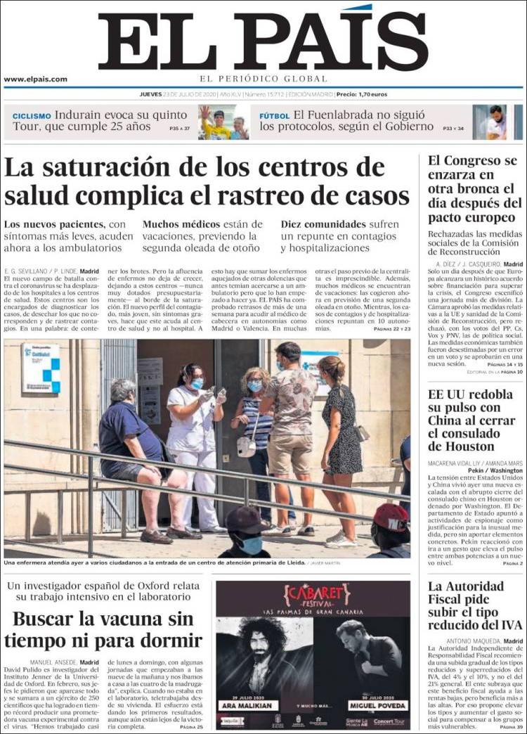 Principales portadas de hoy 23 de Julio de 2020