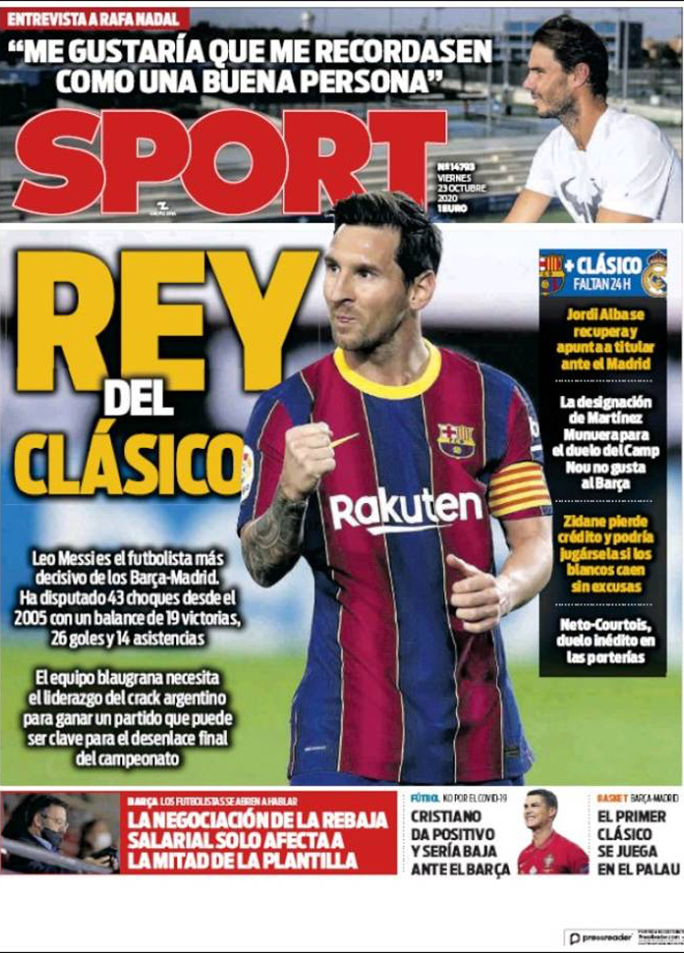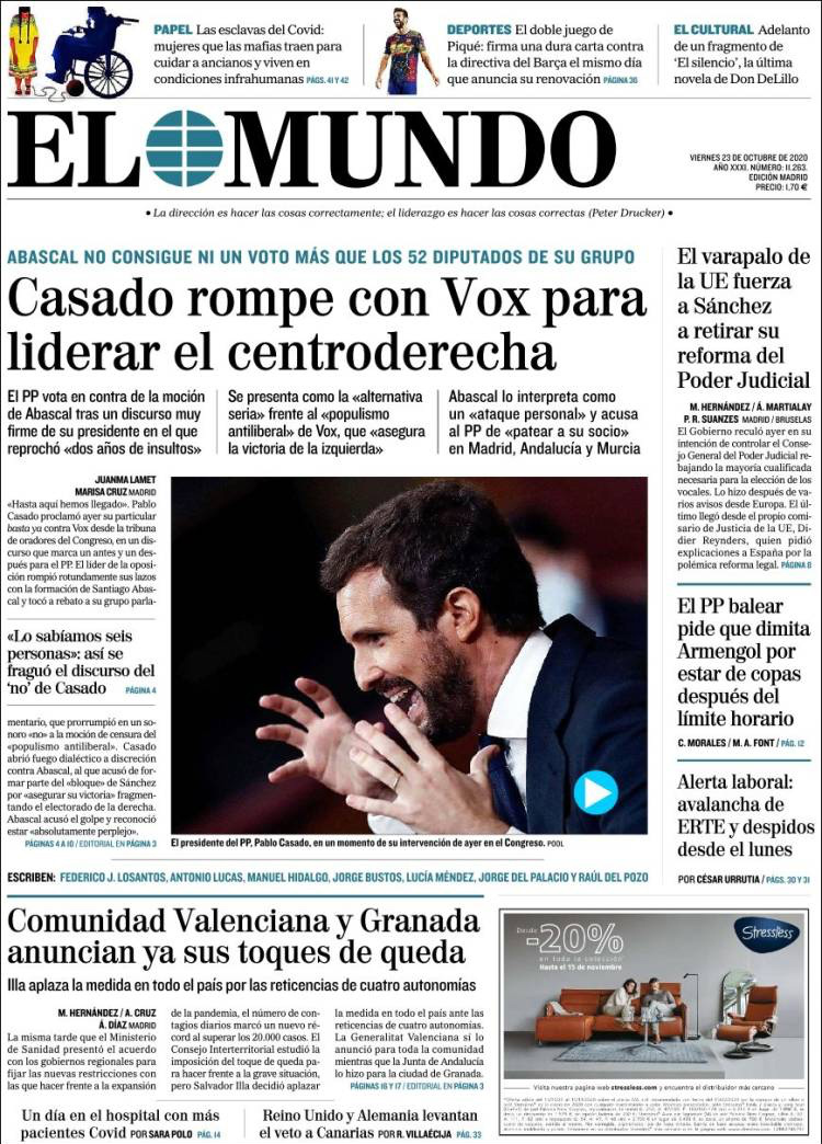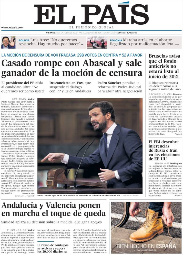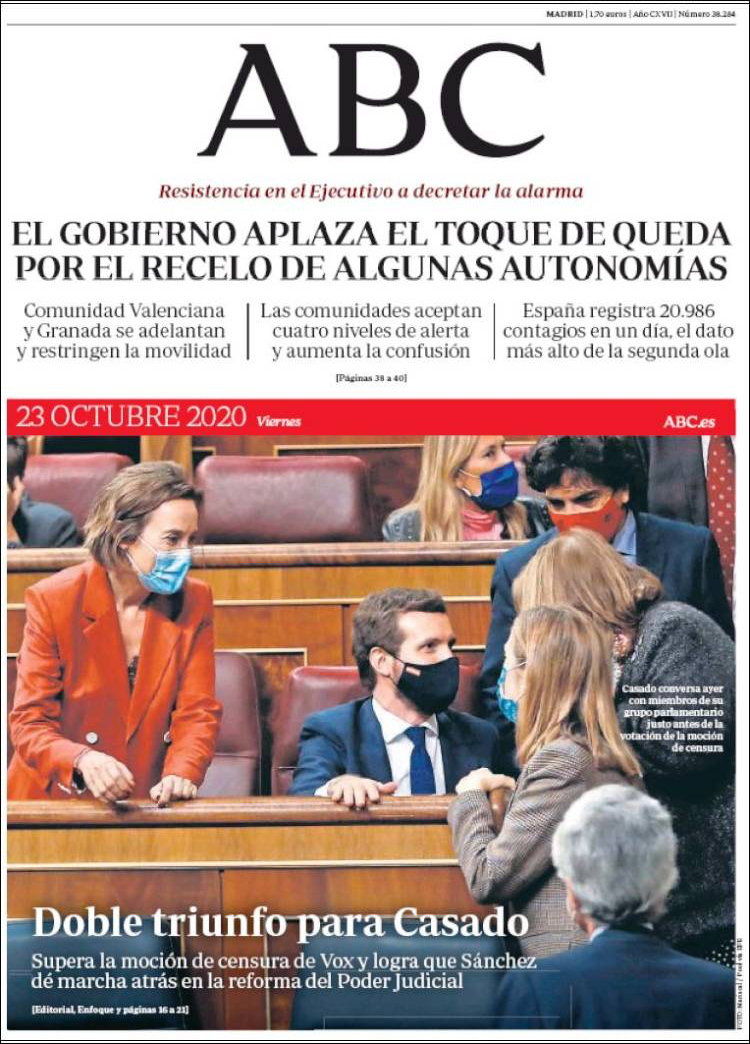 Principales portadas de hoy 23 de Octubre de 2020