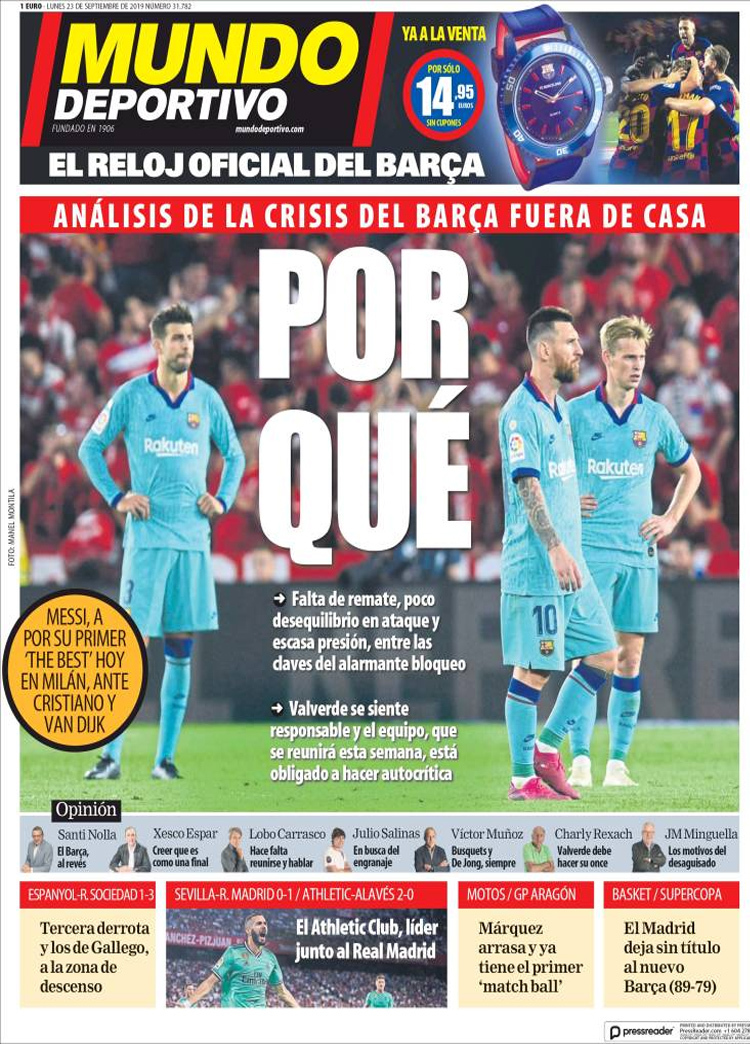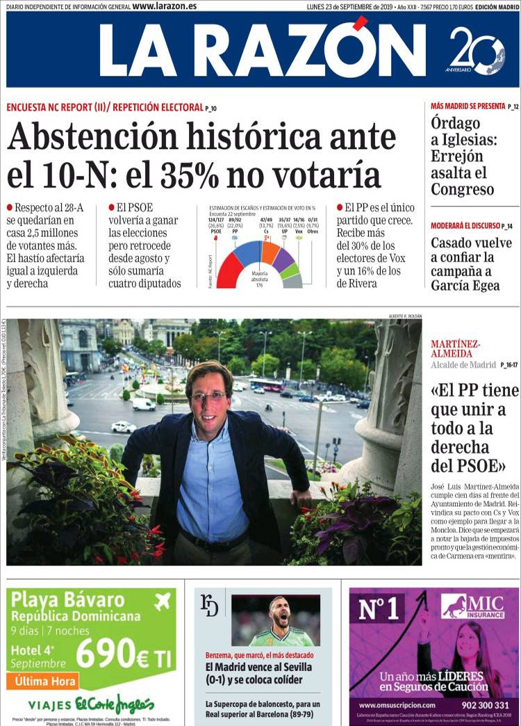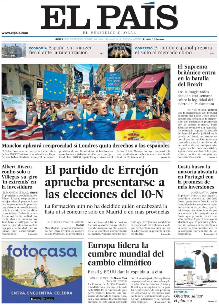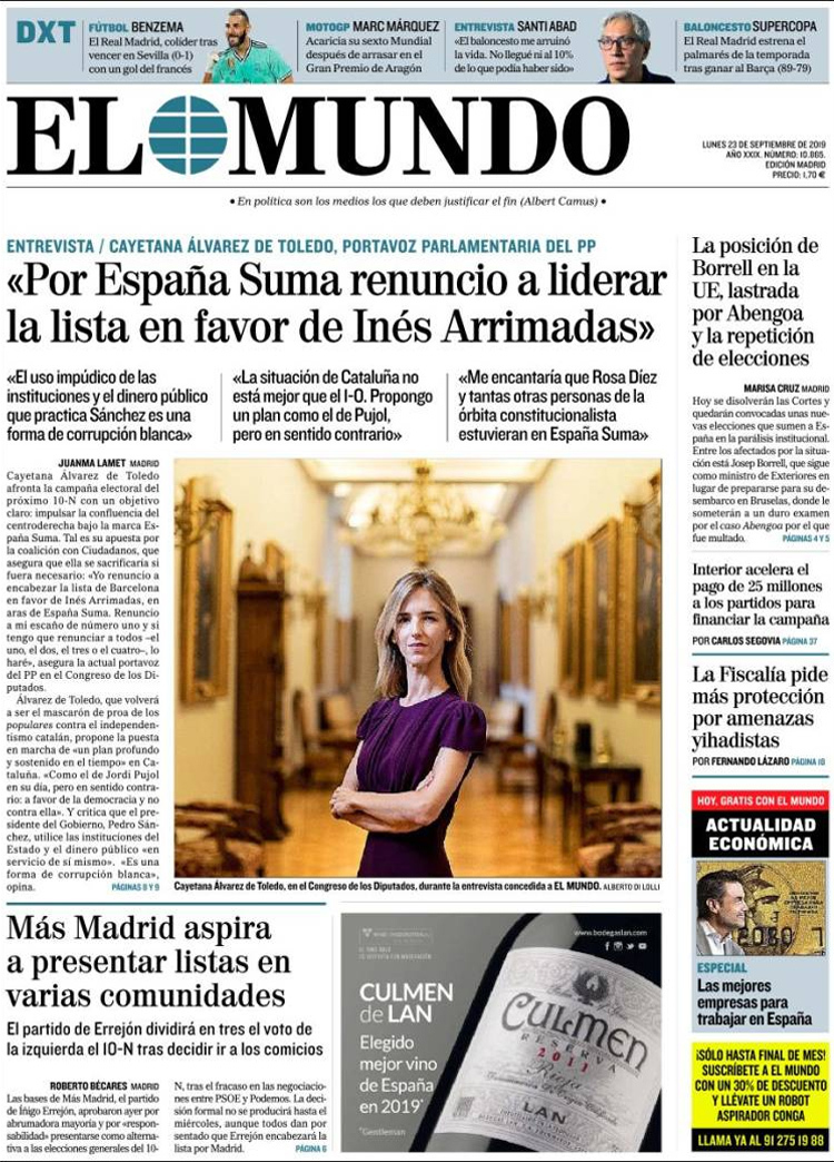 Principales portadas de hoy 23 de Septiembre de 2019