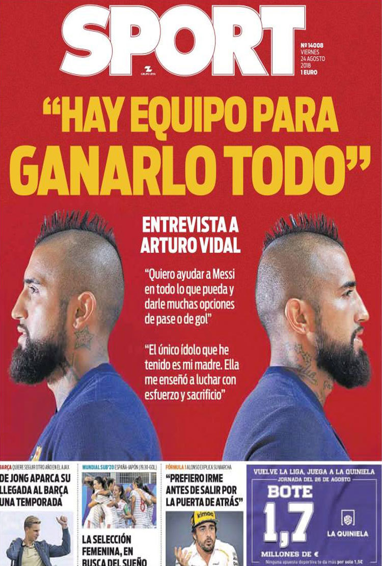 Principales portadas de hoy 24 de agosto de 2018