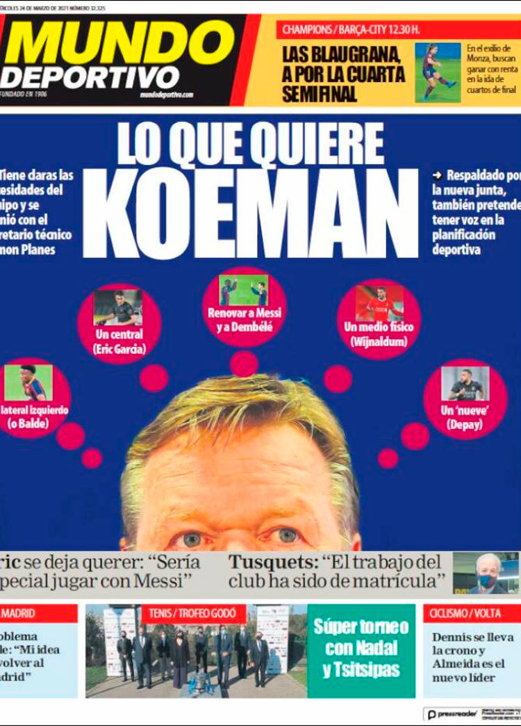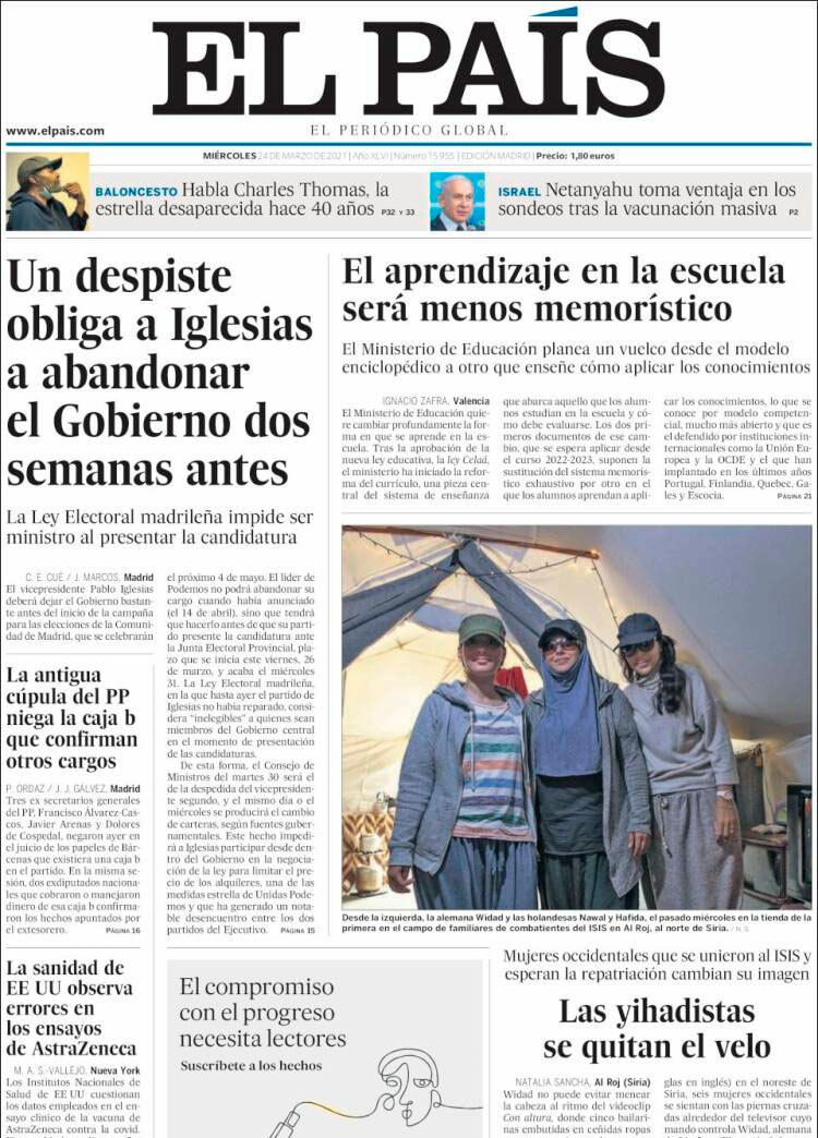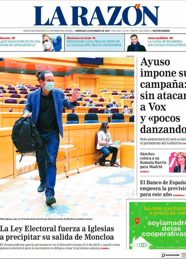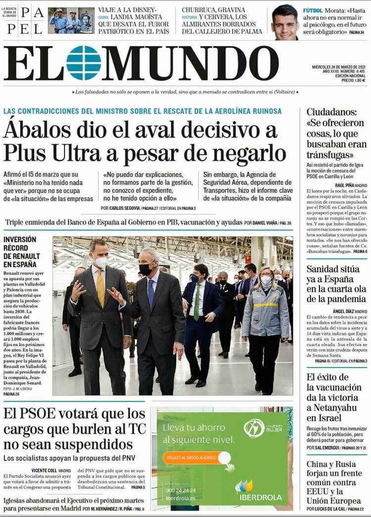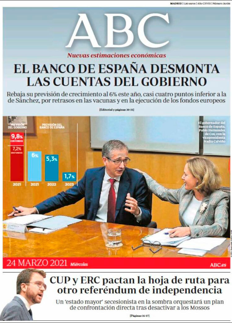 Principales portadas de hoy 24 de Marzo de 2021