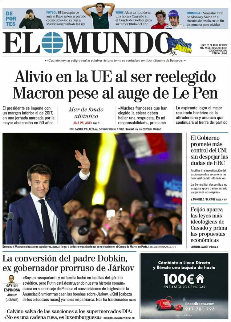 Principales portadas de hoy 25 de Abril de 2022