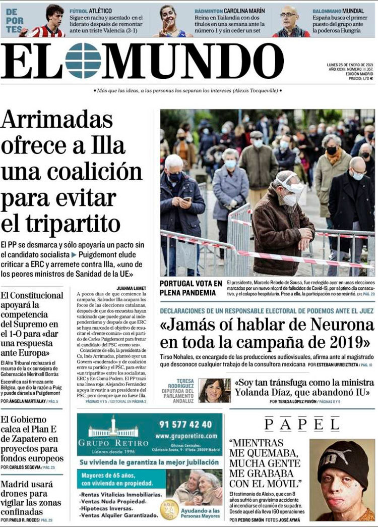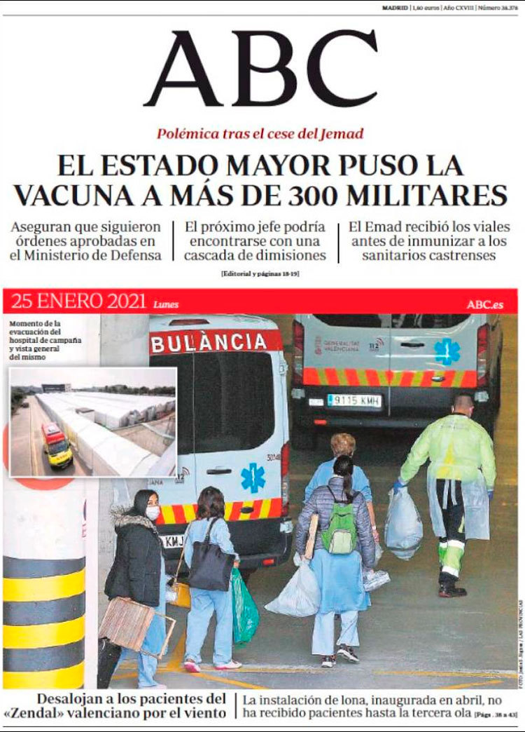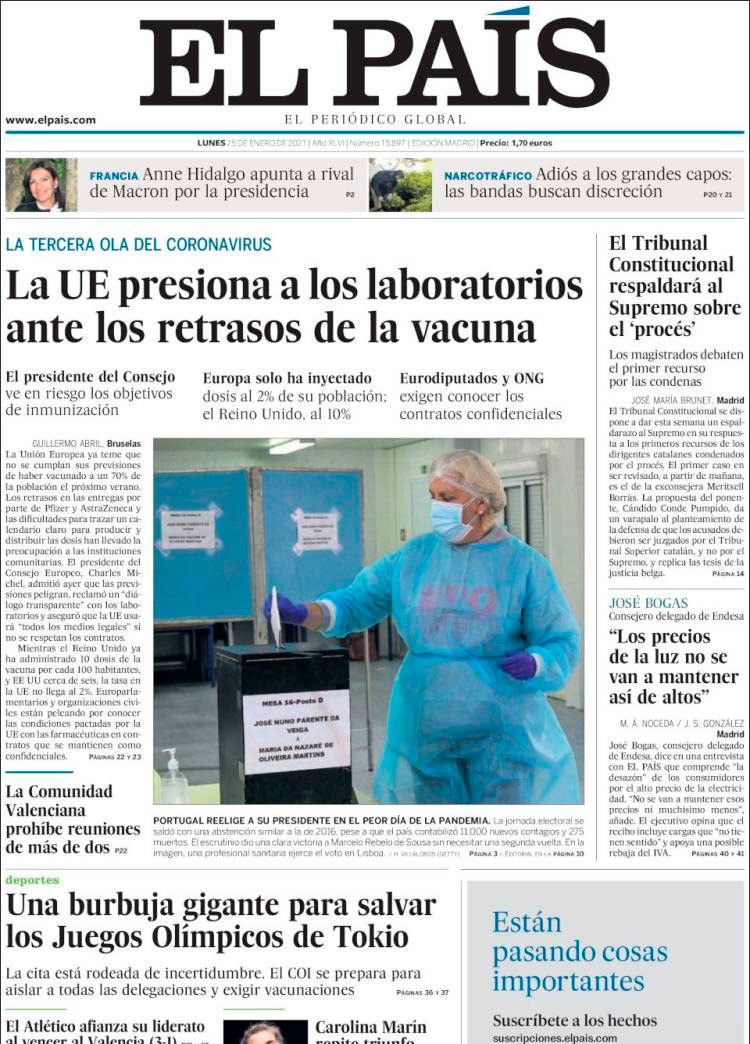 Principales portadas de hoy 25 de Enero de 2021