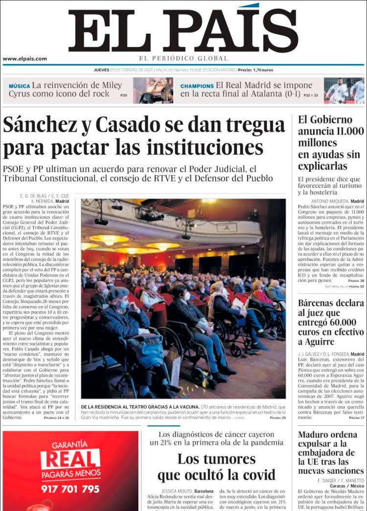 Principales portadas de hoy 25 de Enero de 2021