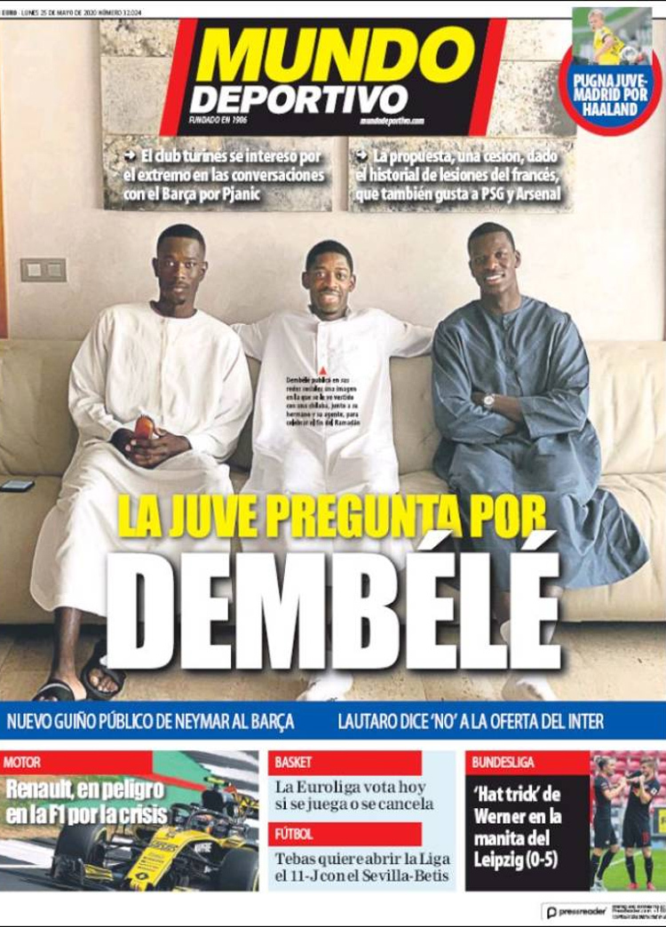 Principales portadas de hoy 25 de Mayo de 2020