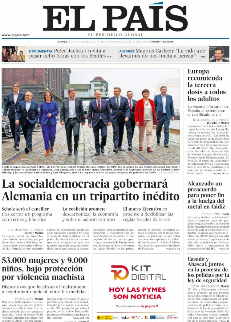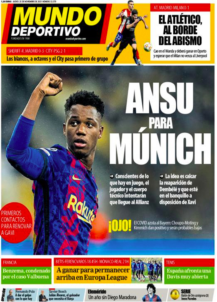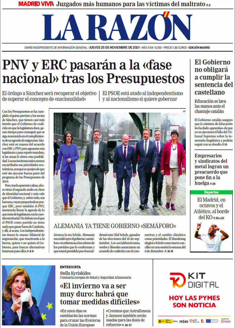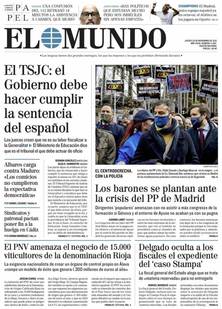Principales portadas de hoy 25 de Noviembre de 2021