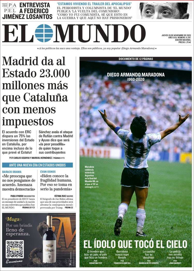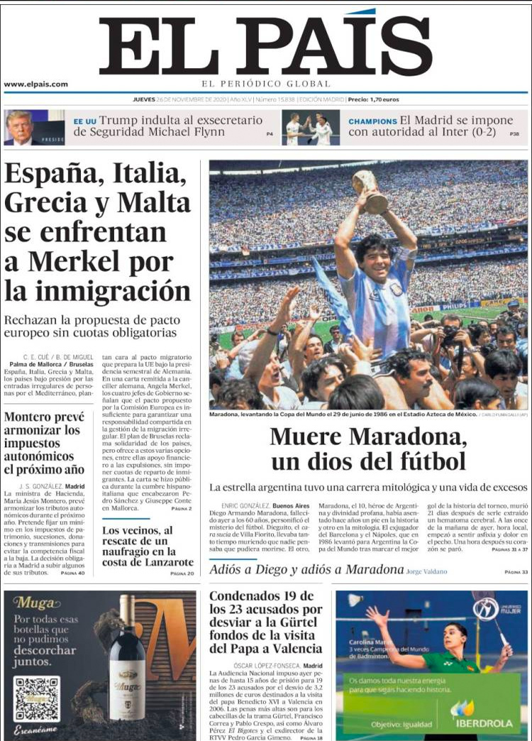 Principales portadas de hoy 26 de Noviembre de 2020