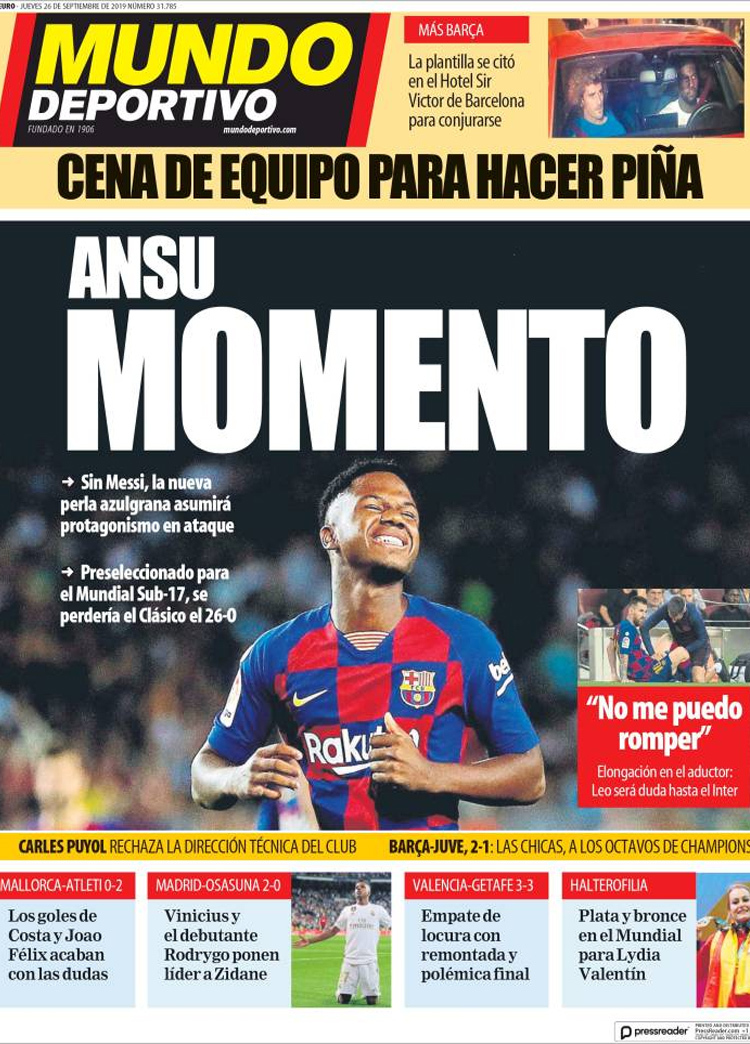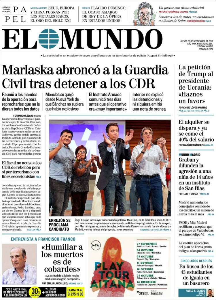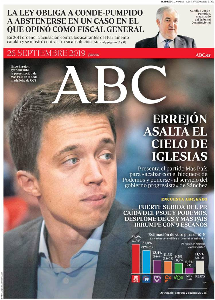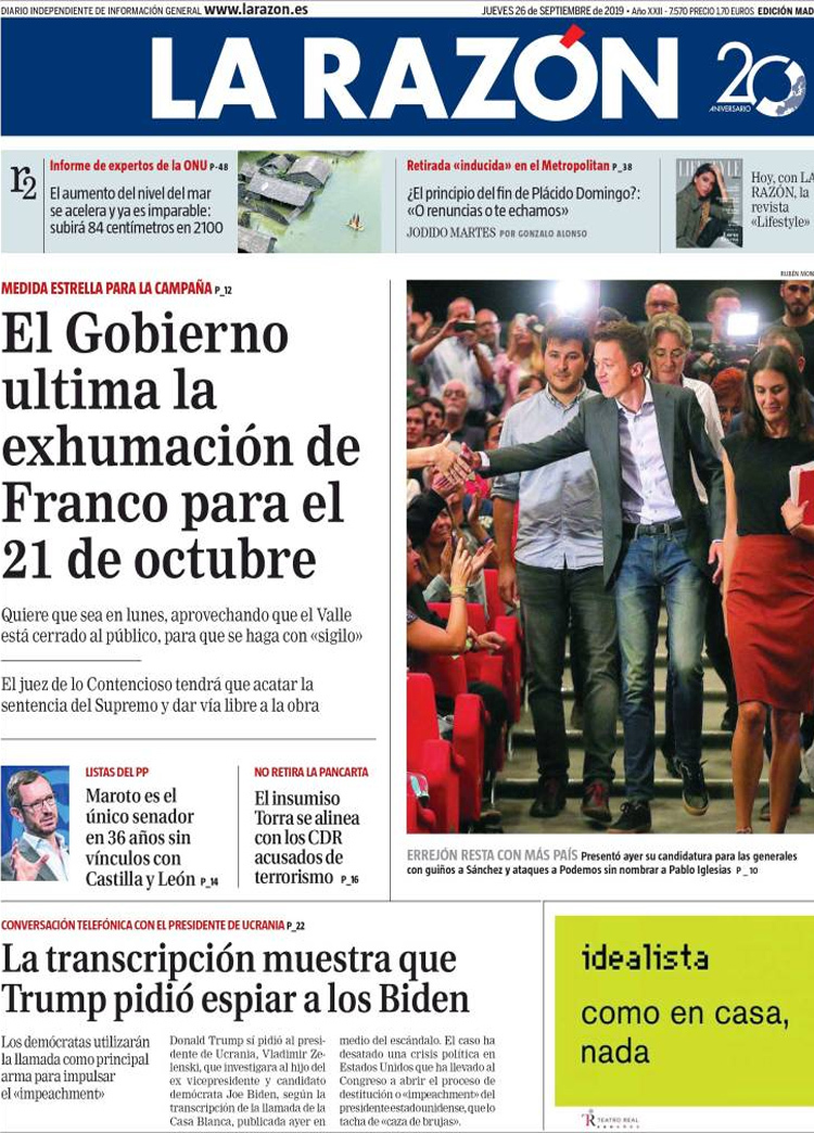 Principales portadas de hoy 26 de Septiembre de 2019