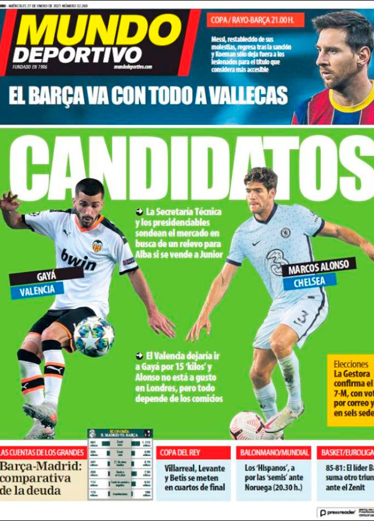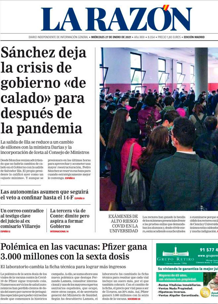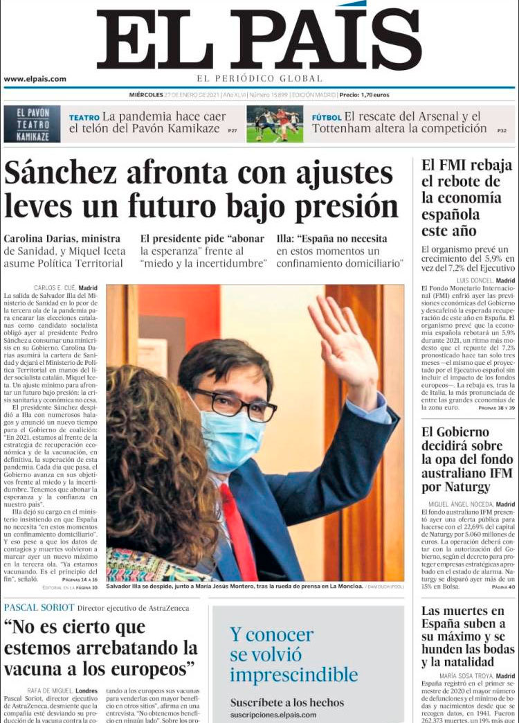 Principales portadas de hoy 27 de Enero de 2021