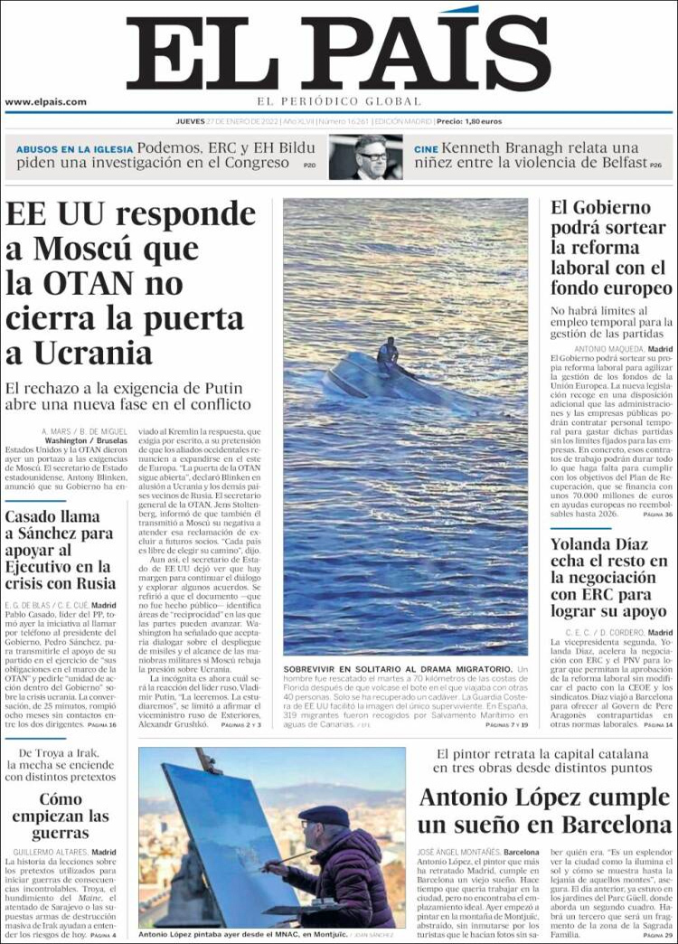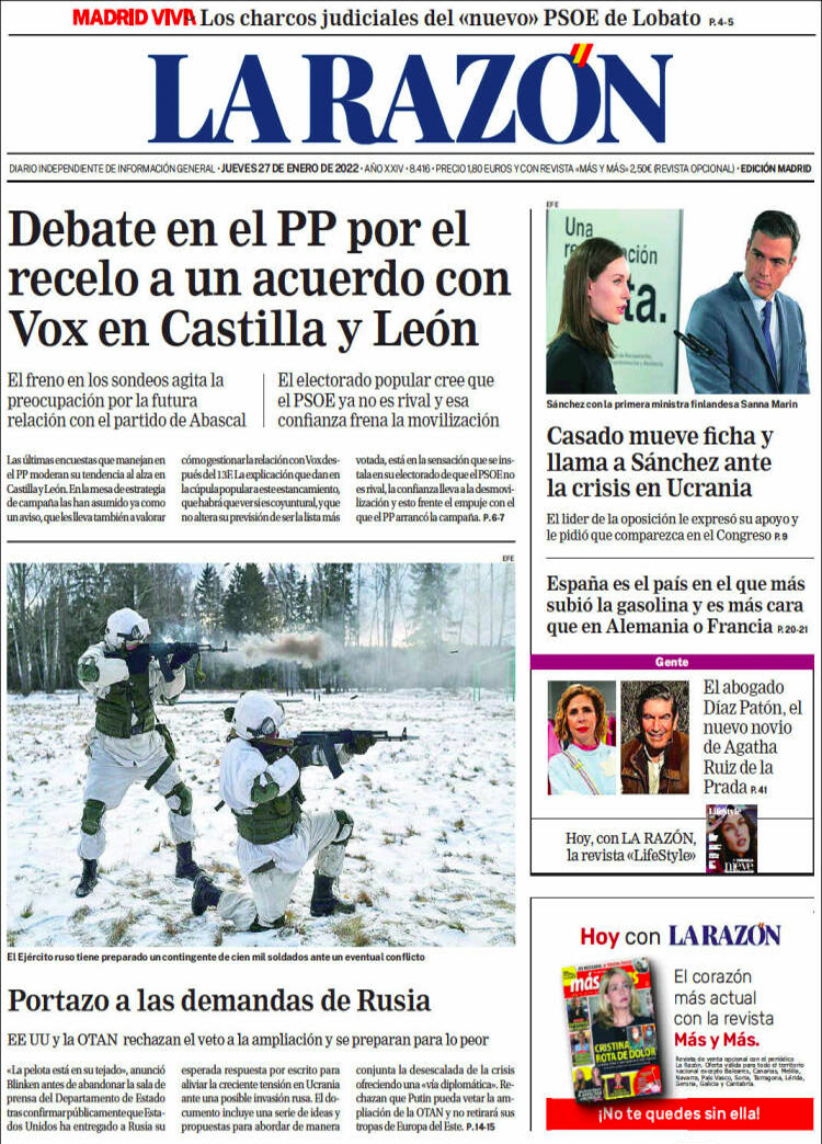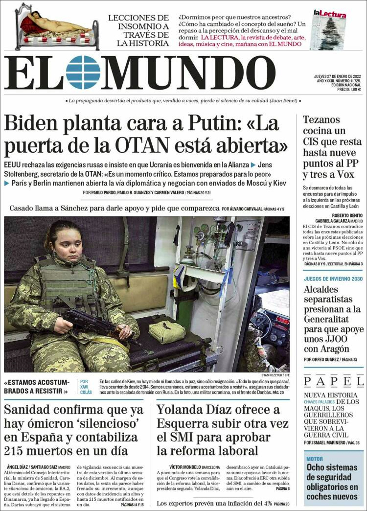 Principales portadas de hoy 27 de Enero de 2022