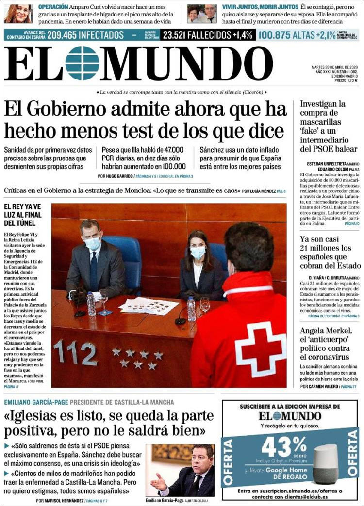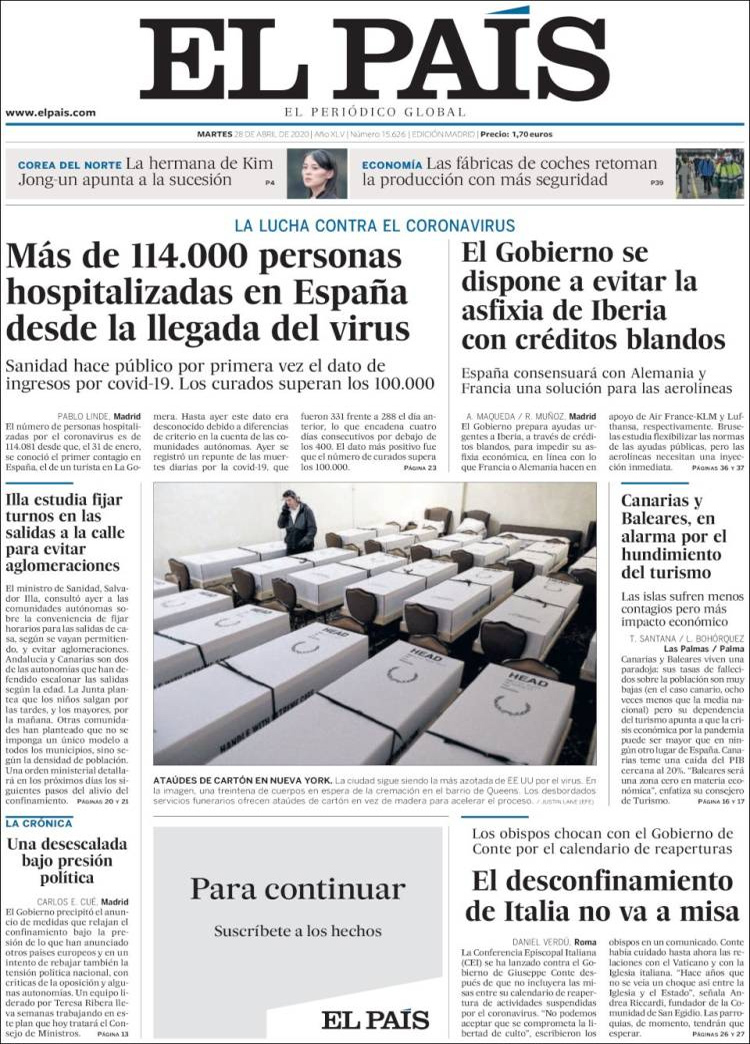 Principales portadas de hoy 28 de Abril de 2020