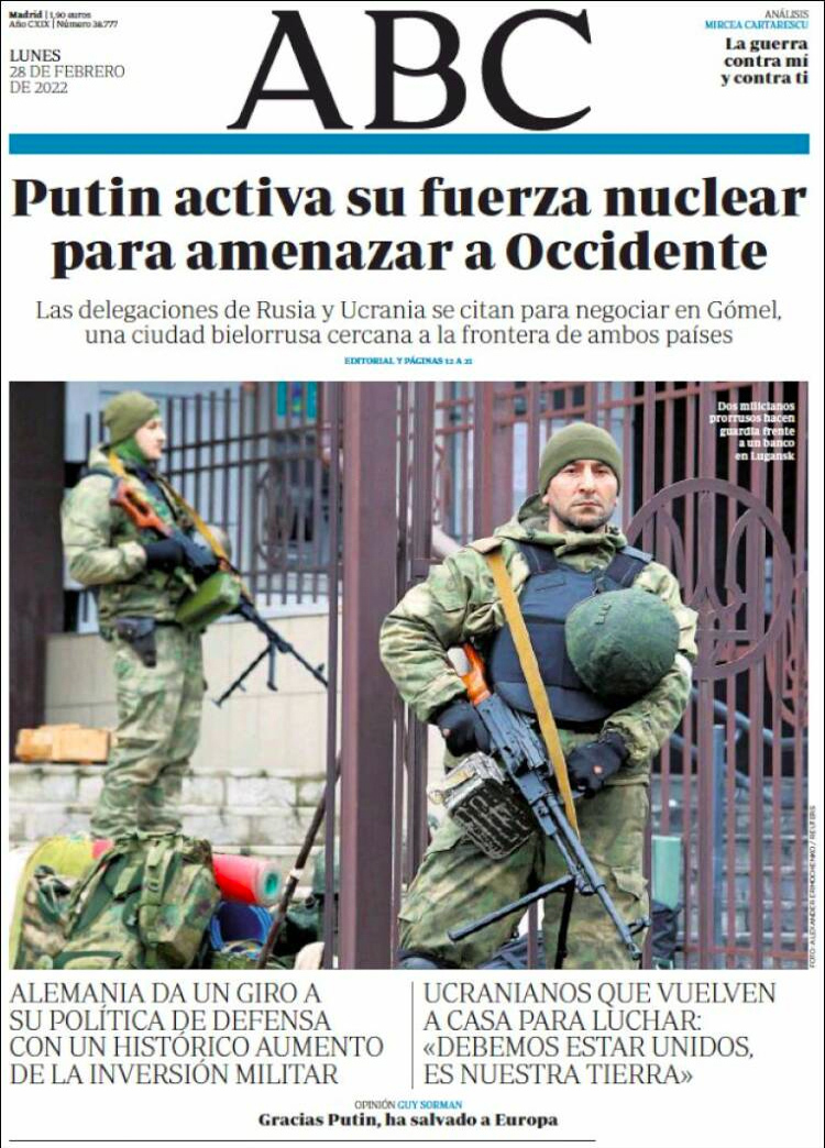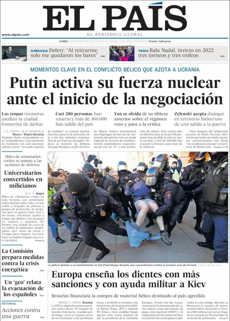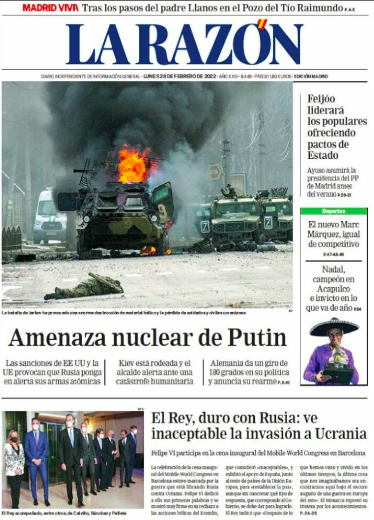 Principales portadas de hoy 28 de Febrero de 2022
