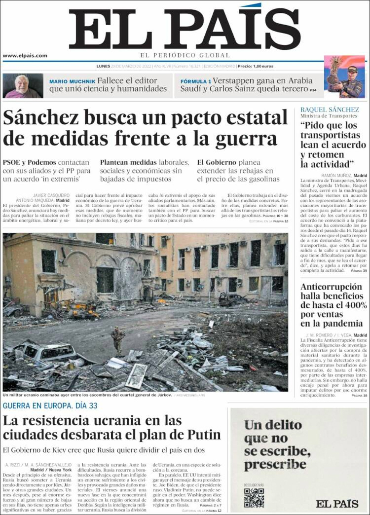 Principales portadas de hoy 28 de Marzo de 2022