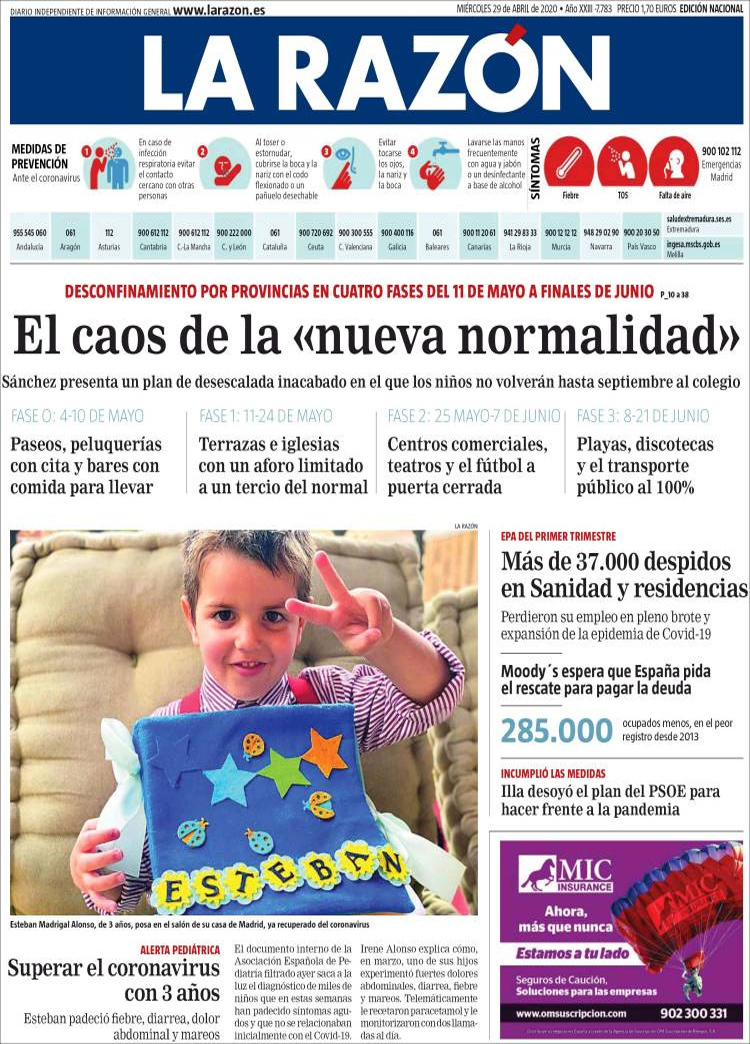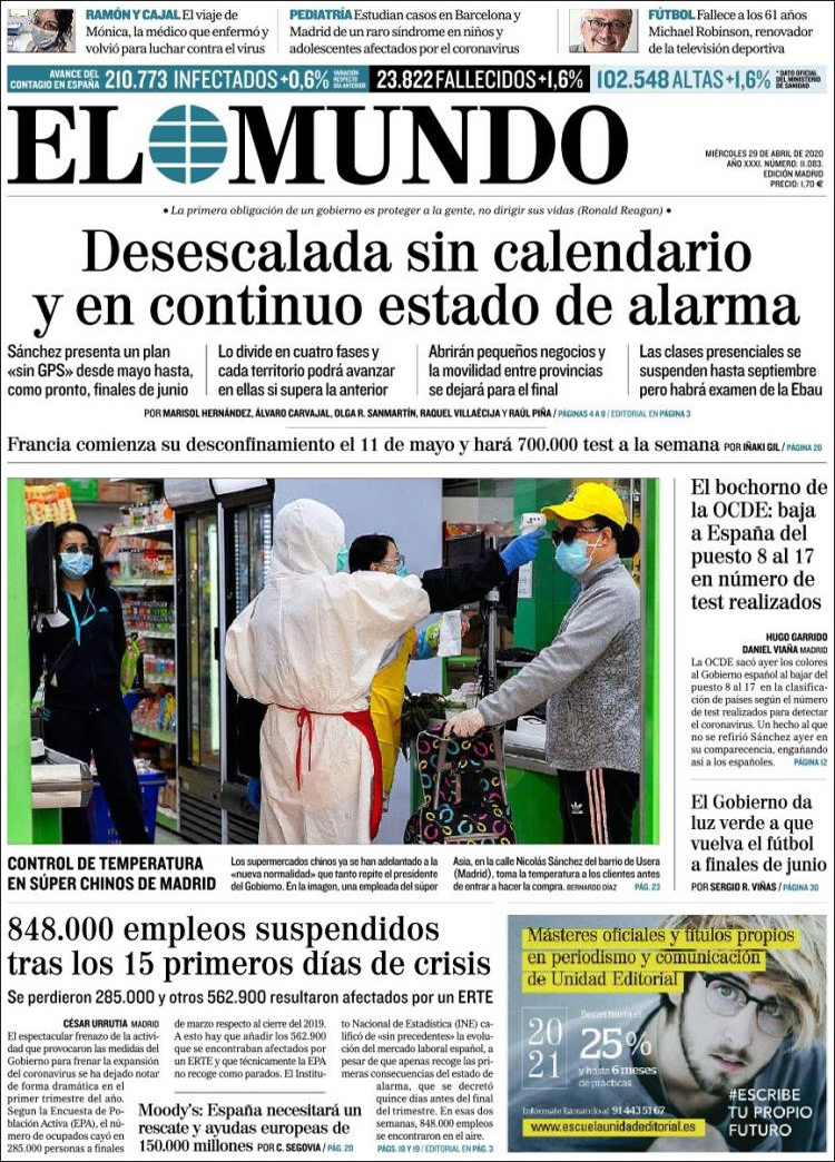 Principales portadas de hoy 29 de Abril de 2020
