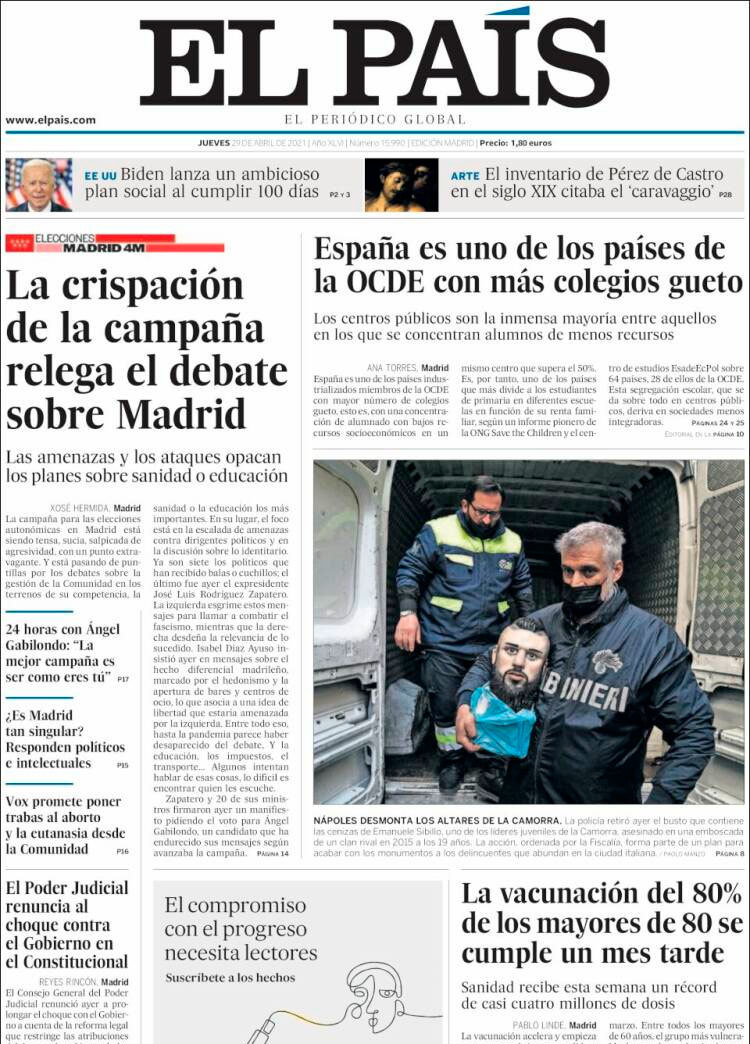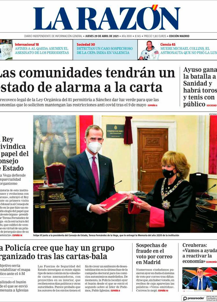 Principales portadas de hoy 29 de Abril de 2021