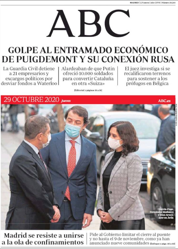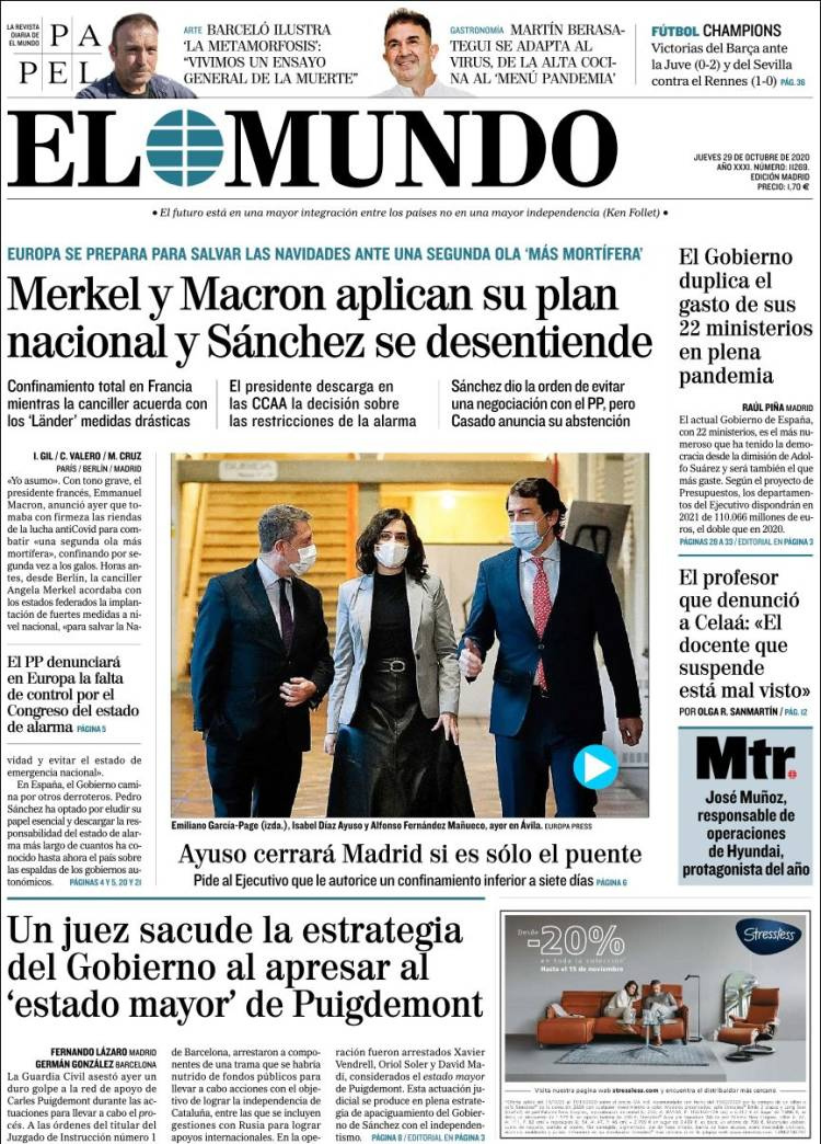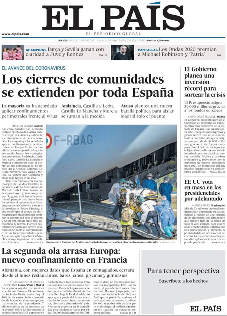 Principales portadas de hoy 29 de Octubre de 2020