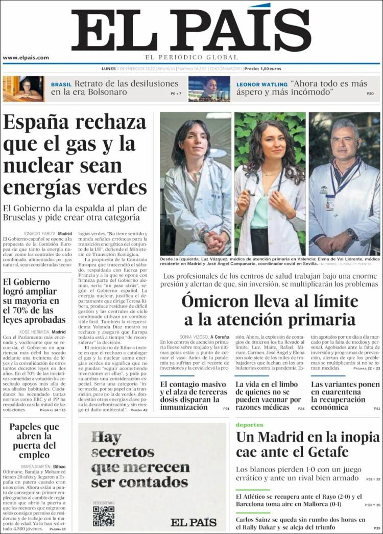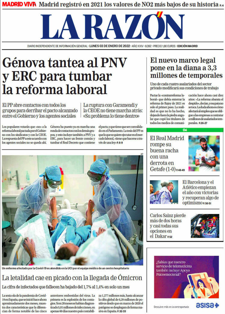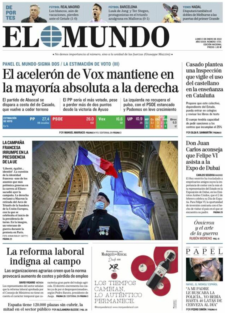 Principales portadas de hoy 3 de Enero de 2022