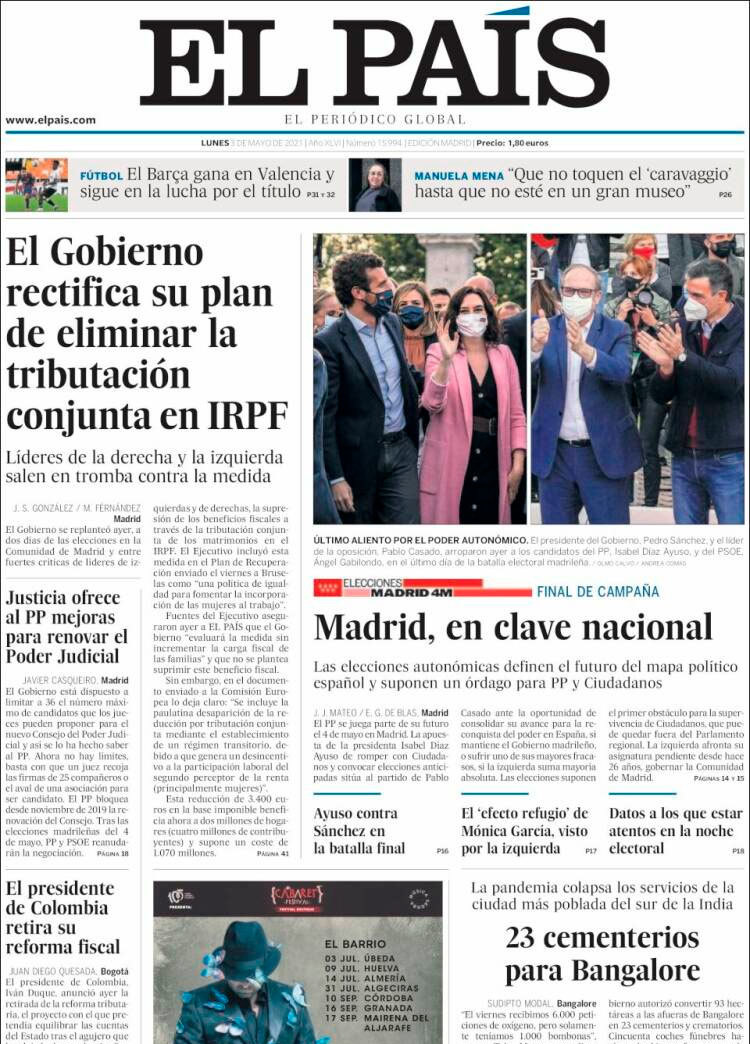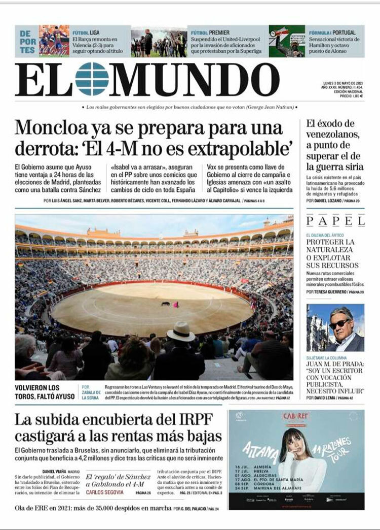 Principales portadas de hoy 3 de Mayo de 2021