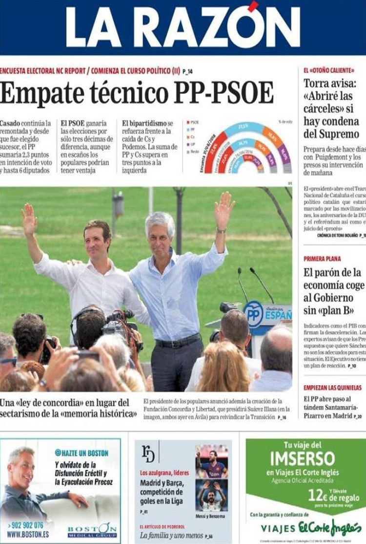Principales portadas de hoy 3 de septiembre de 2018