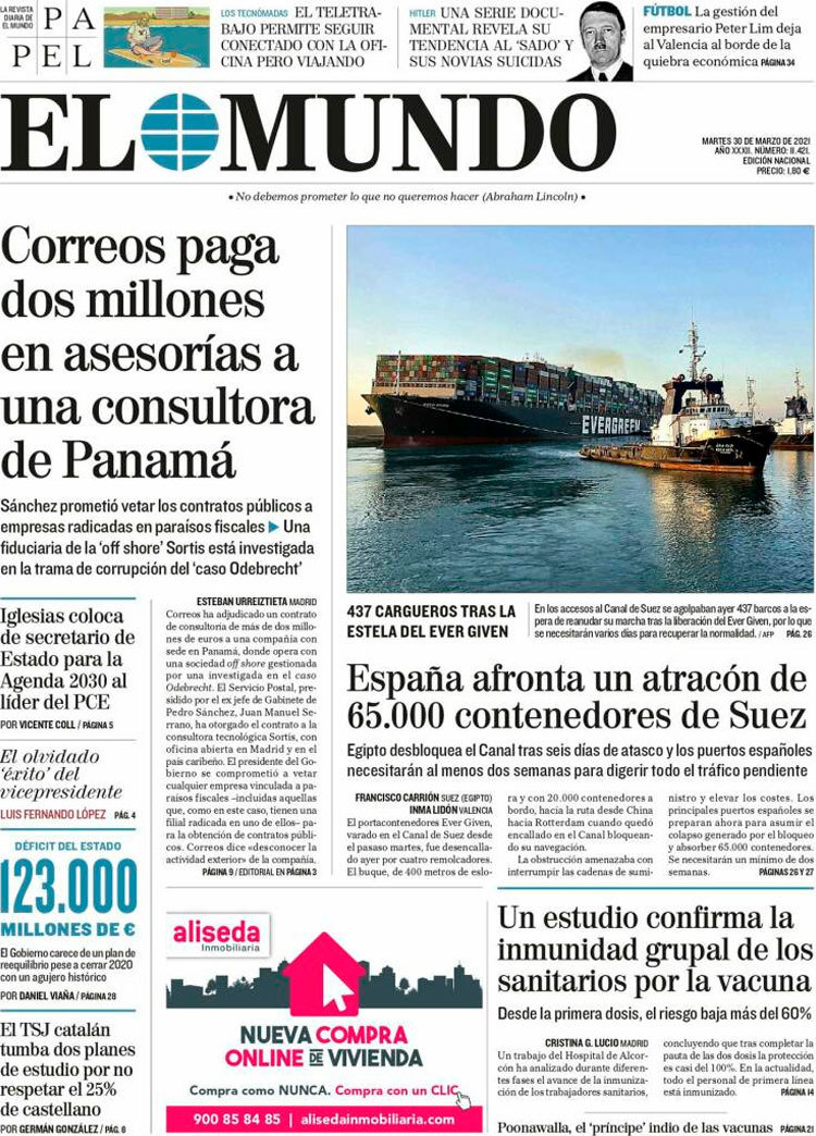 Principales portadas de hoy 30 de Marzo de 2021