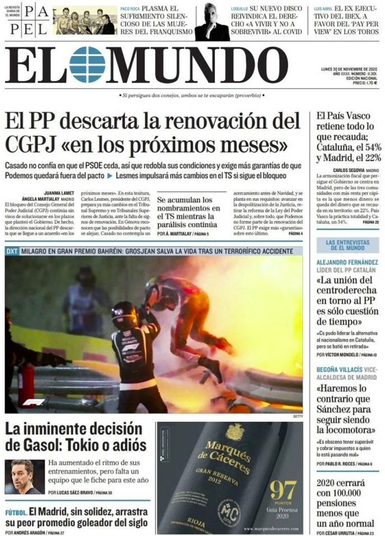 Principales portadas de hoy 30 de Noviembre de 2020