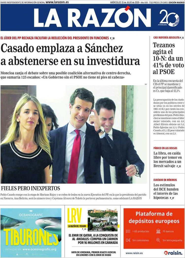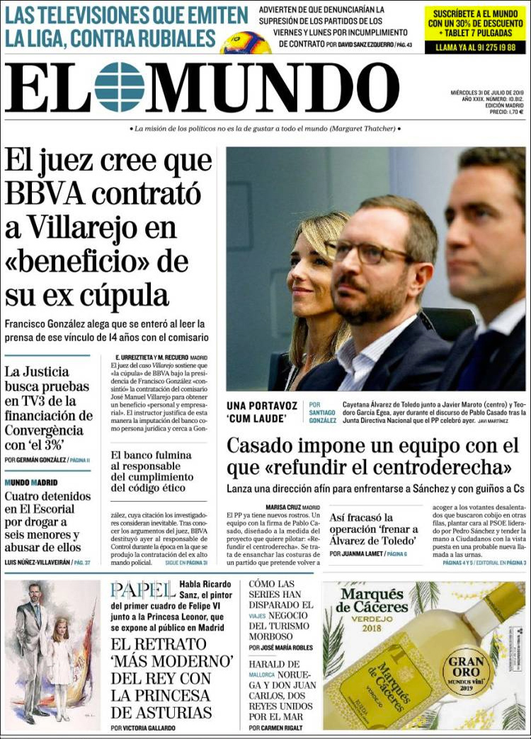 Principales portadas de hoy 31 de Julio de 2019
