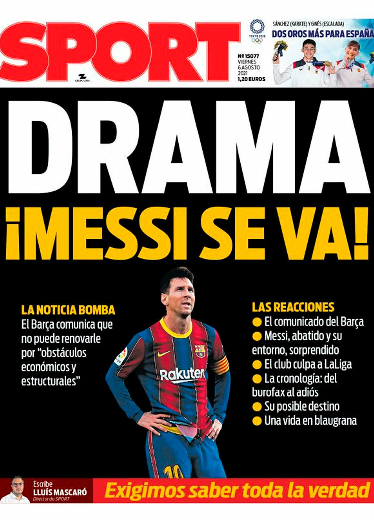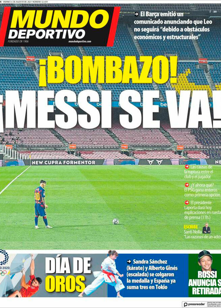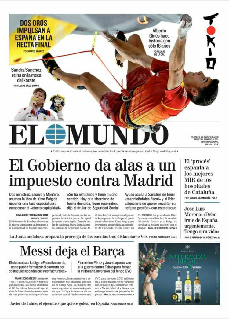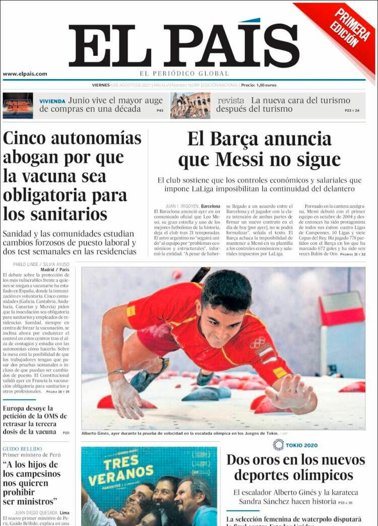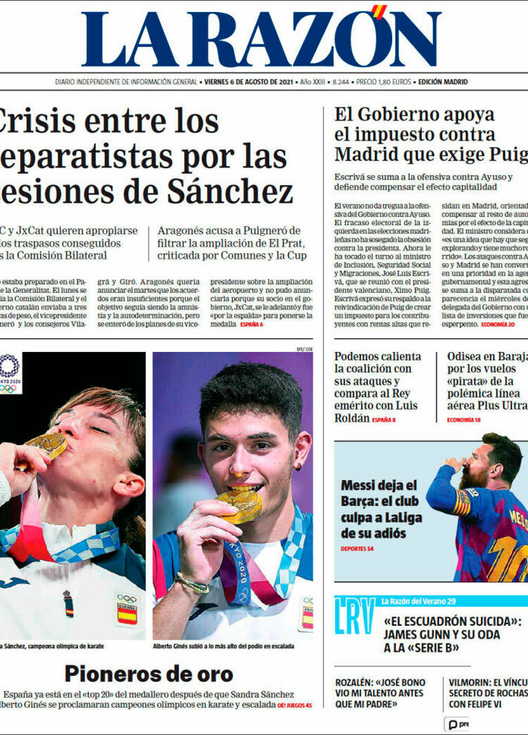 Principales portadas de hoy 6 de Agosto de 2021