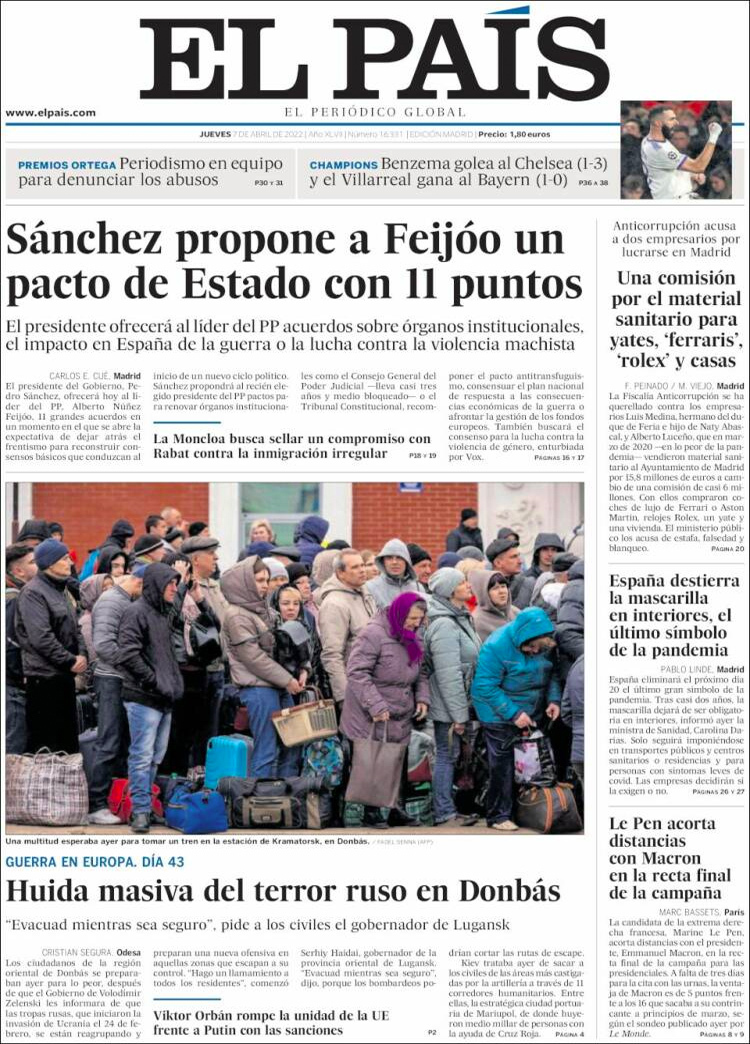 Principales portadas de hoy 7 de Abril de 2022