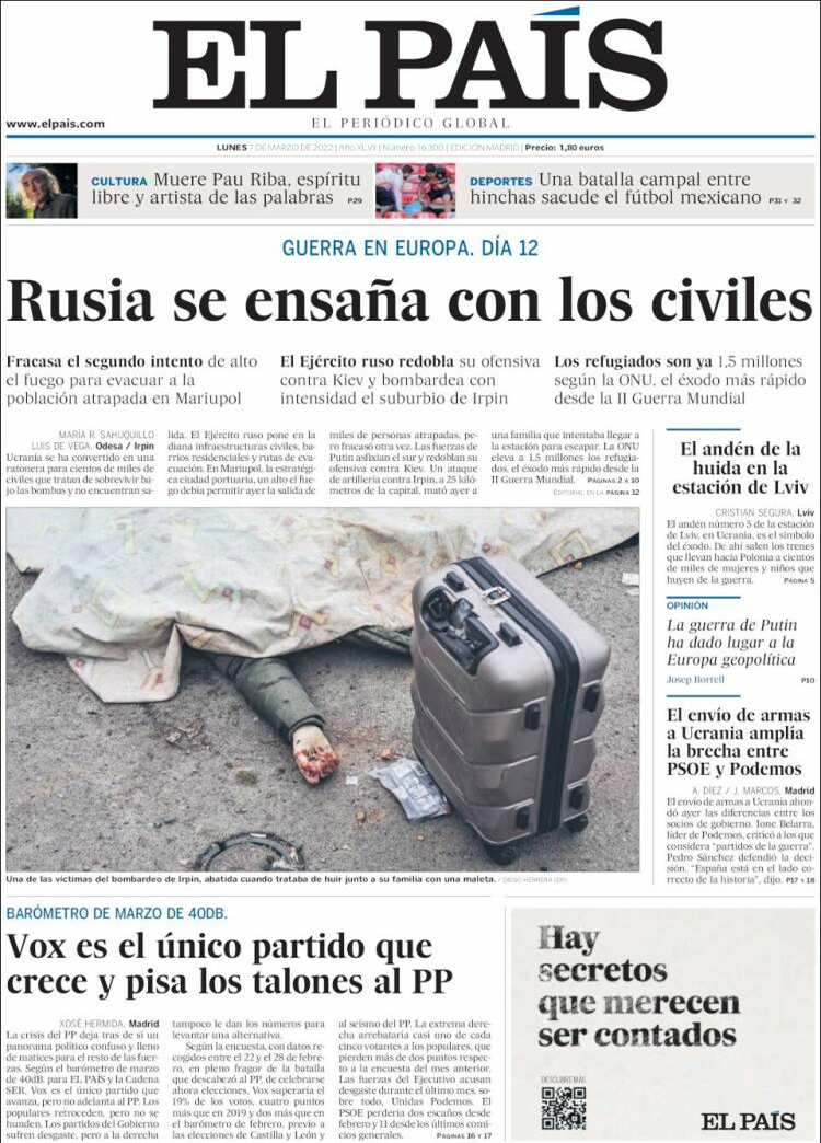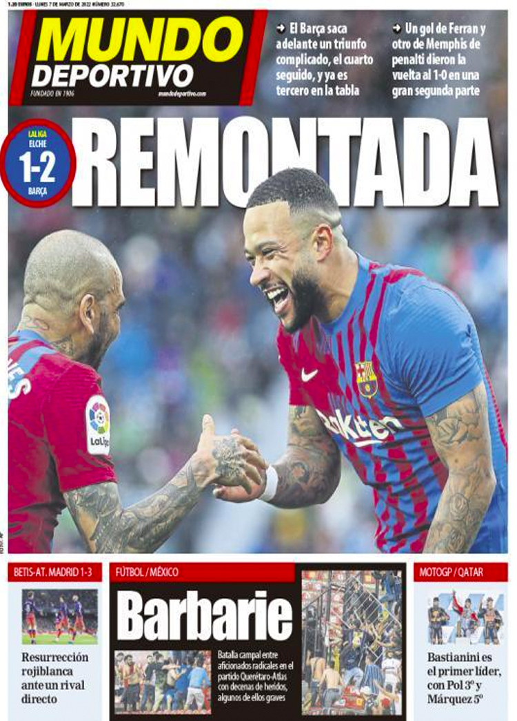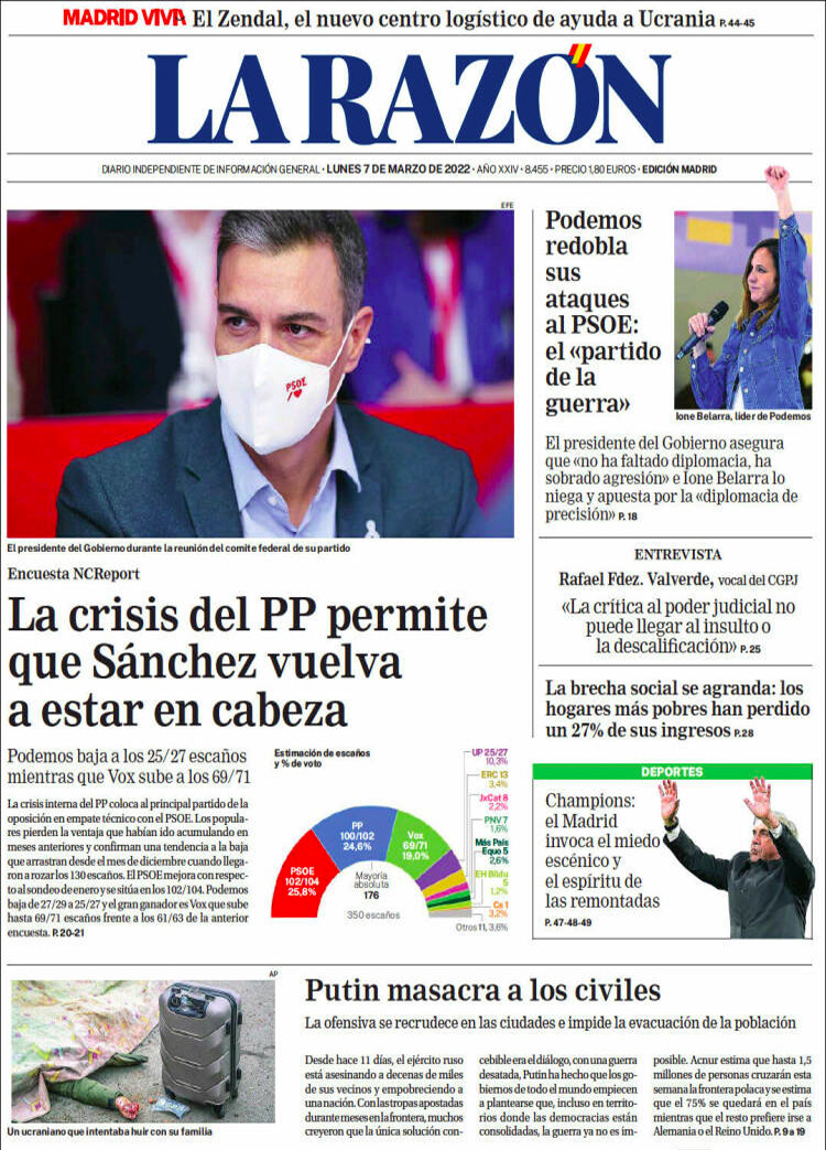 Principales portadas de hoy 7 de Marzo de 2022