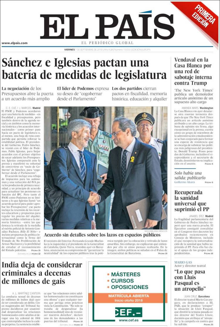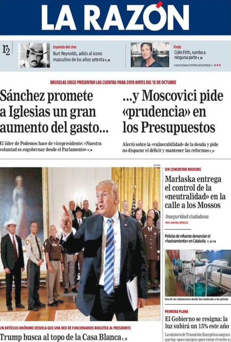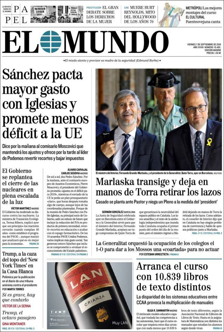 Principales portadas de hoy 7 de septiembre de 2018