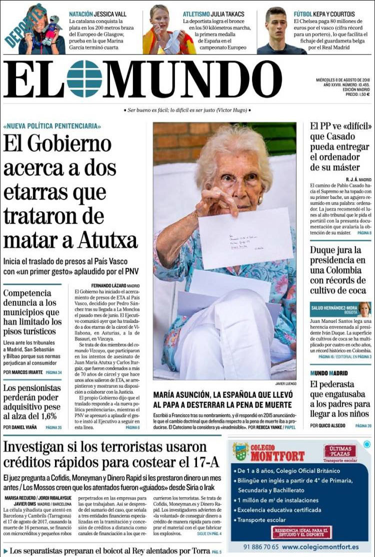 Principales portadas de hoy 8 de Agosto de 2018