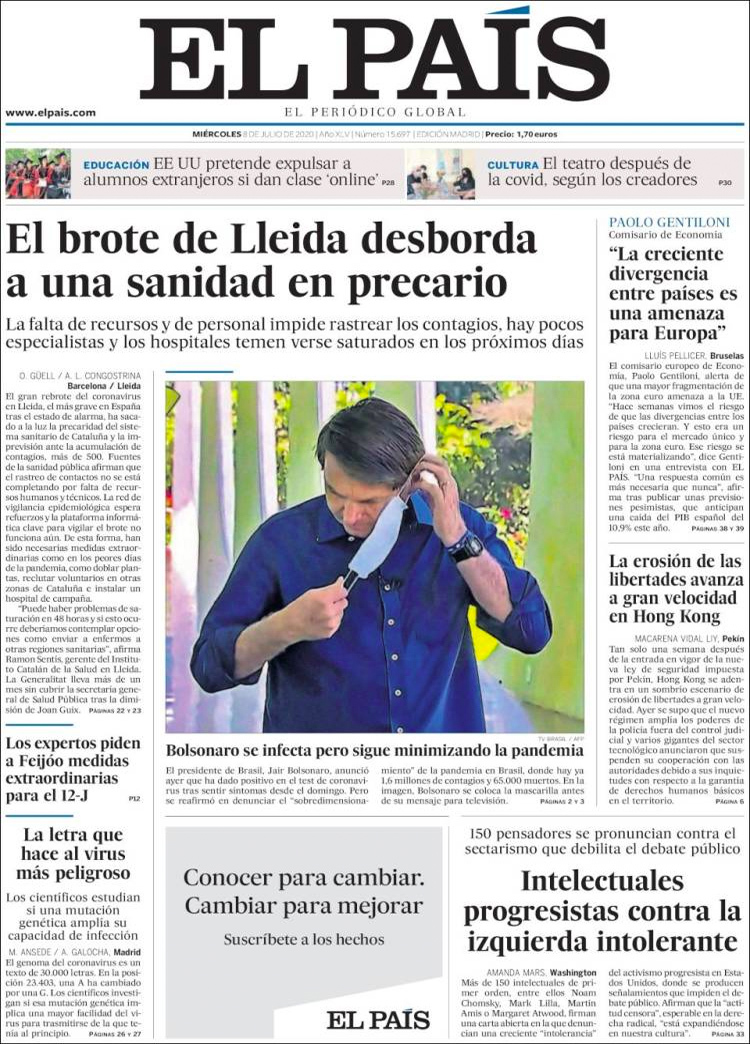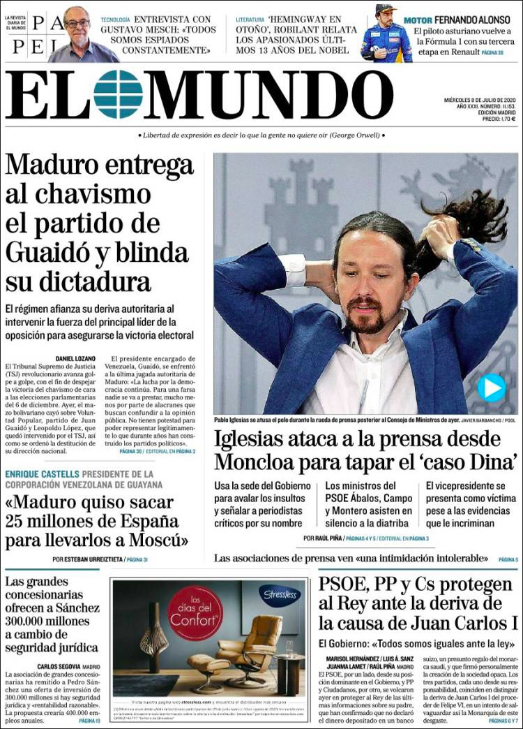 Principales portadas de hoy 8 de Julio de 2020